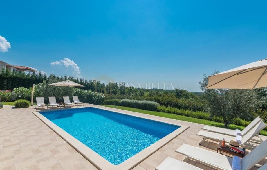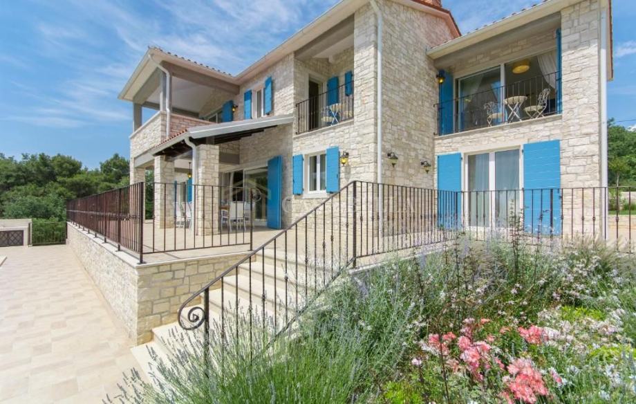CASA BELLA iz ponude izdvaja ovu impozantna kamenu vilu koja se prostire na 350 kvadratnih metara, okružena prostranim i njegovanim vrtom koji obuhvaća čak 920 kvadratnih metara. Njegova estetika spaja klasični mediteranski stil s modernom elegancijom, stvarajući savršenu sinergiju.