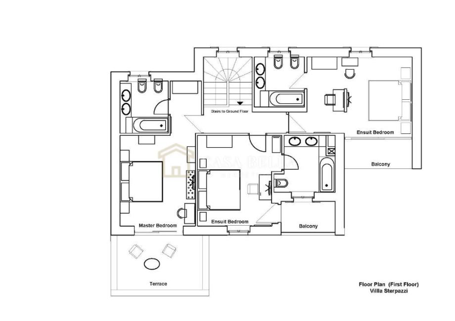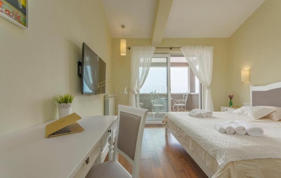 Unutar vile, nalaze se četiri prostrane spavaće sobe, svaka s vlastitom luksuznom kupaonicom. Svaka od tih soba ima izlaz na vlastiti balkon, pružajući vam idealno mjesto za opuštanje i uživanje u prekrasnom okolišu. U prizemlju vile nalazi se potpuno opremljena kuhinja i blagovaonica.