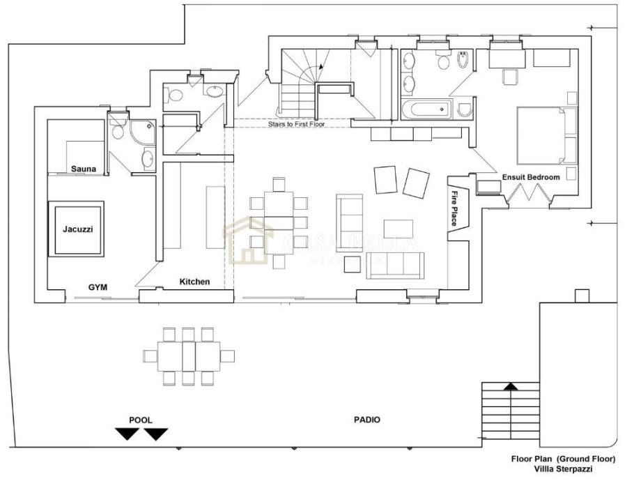 Dnevni boravak sadrži zadivljujući pogled na prirodu i more, s izlazom na natkrivenu terasu koja se ističe svojom elegancijom. Vila također sadrži i poseban prostor za opuštanje koji uključuje jacuzzi i saunu, pružajući vam posebno iskustvo opuštanja.