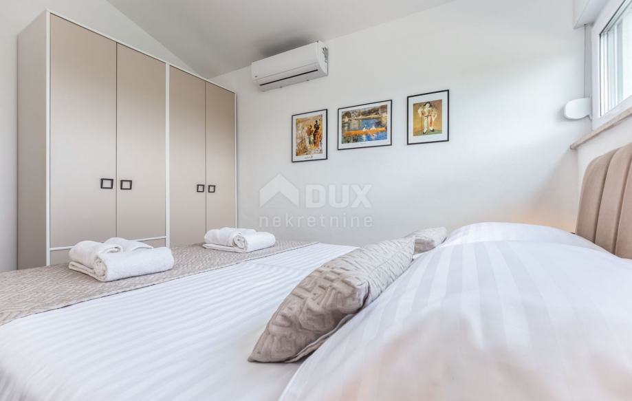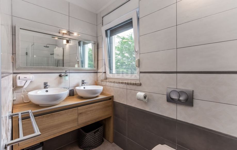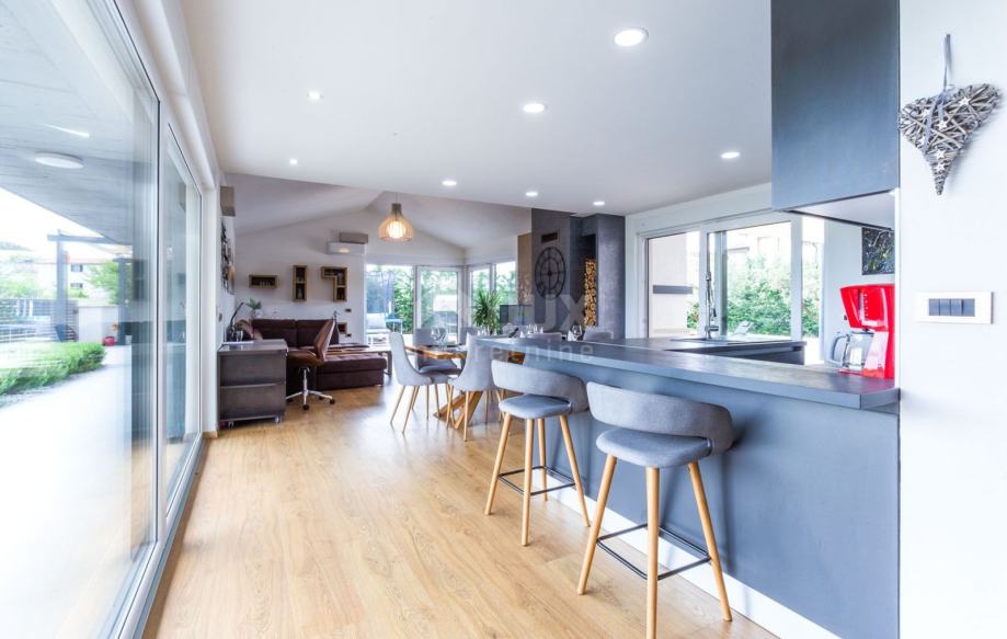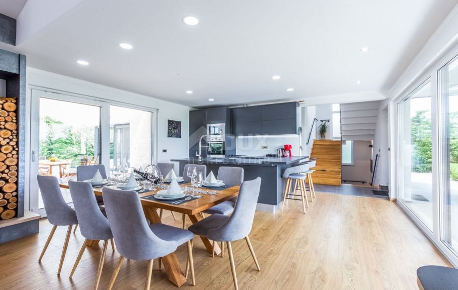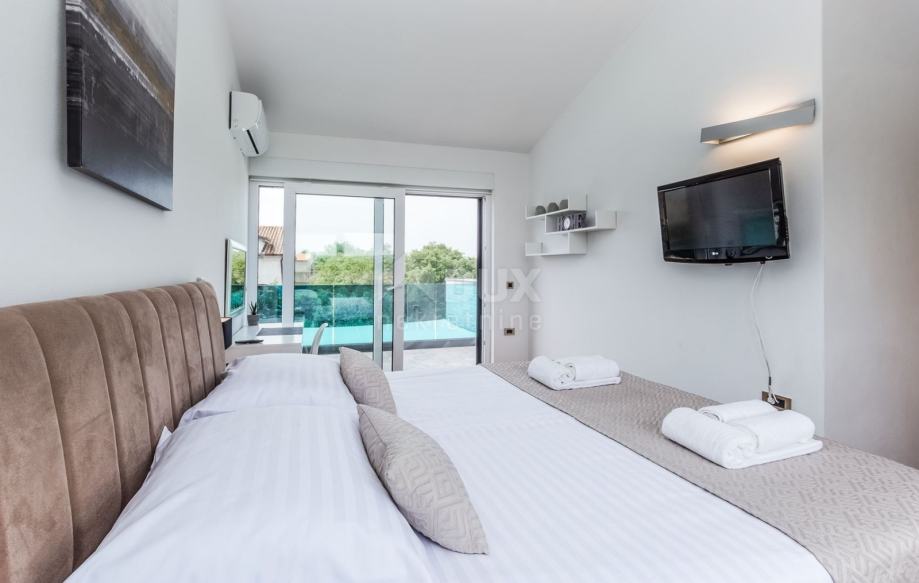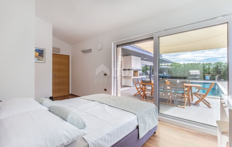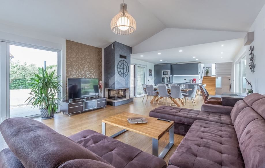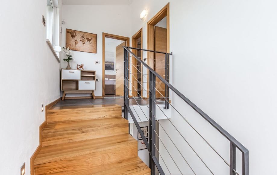 Novoizgrađena luksuzna vila uređena u modernom stilu s vanjskim bazenom smještena je na idealnom položaju za kvalitetan odmor nudeći mogućnost odlaska od gradske gužve te pruža mirnije vrijeme u ljetnim mjesecima, a opet nedaleko grada i u blizini svih sadržaja potrebnih za život.
