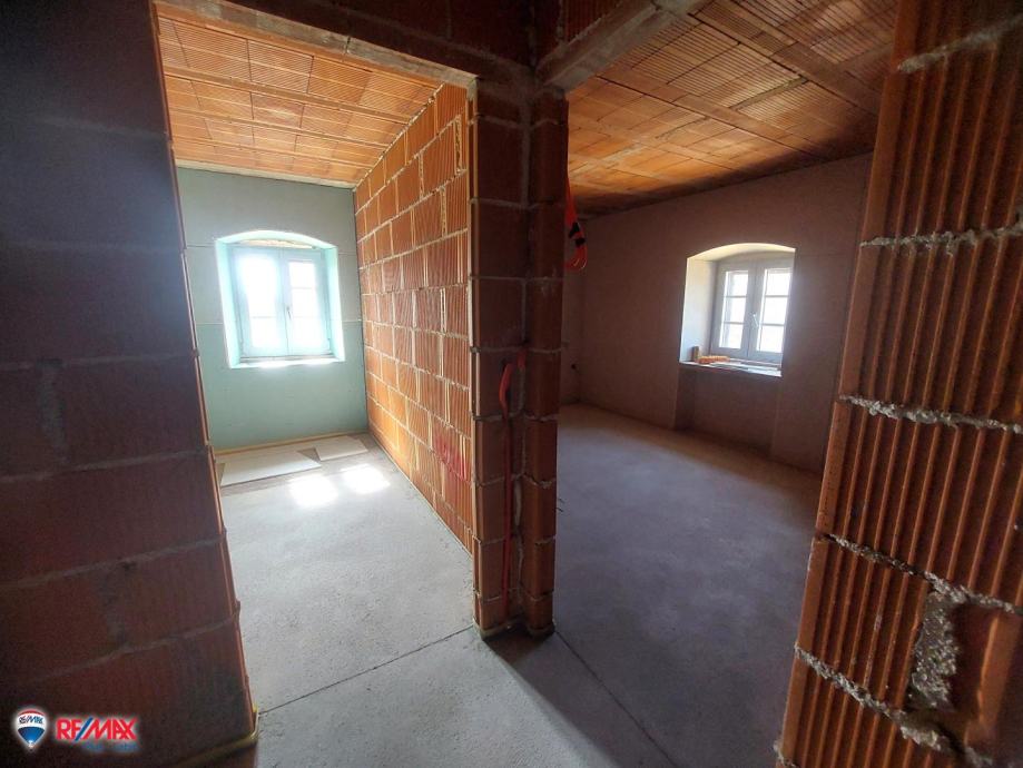 Kamenim stepenica se penje na prvi kat gdje su planirane "open space" kuhinja, blagovaona i dnevni boravak, dvije sobe, kupaona te prostor za praonu.