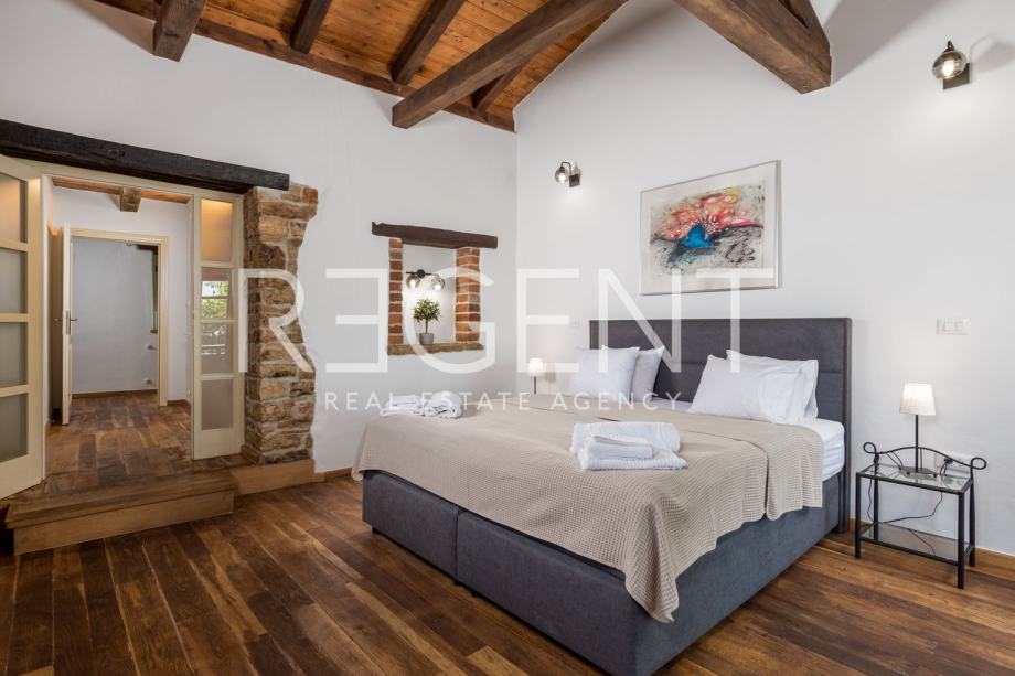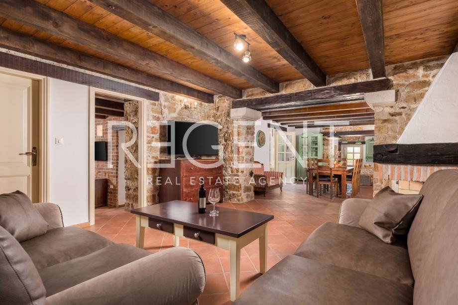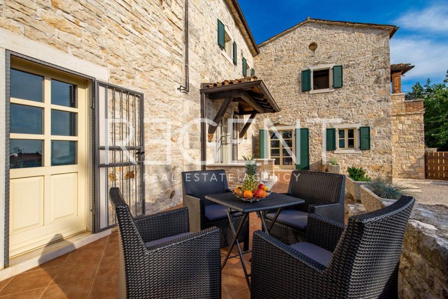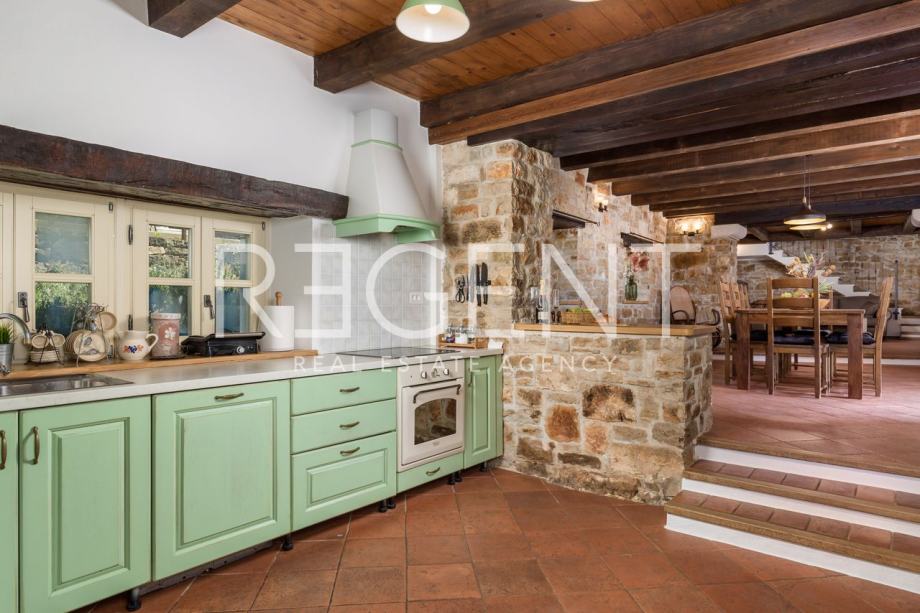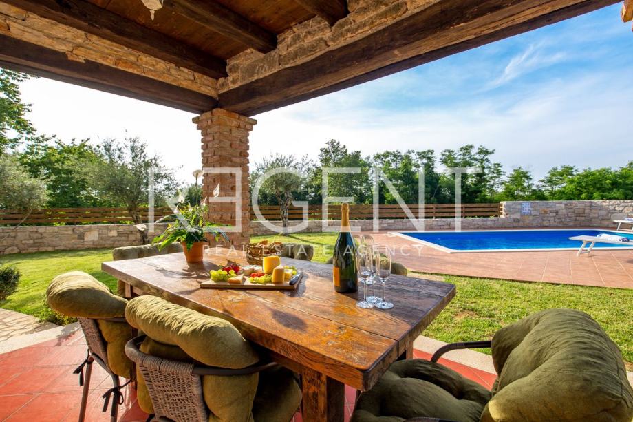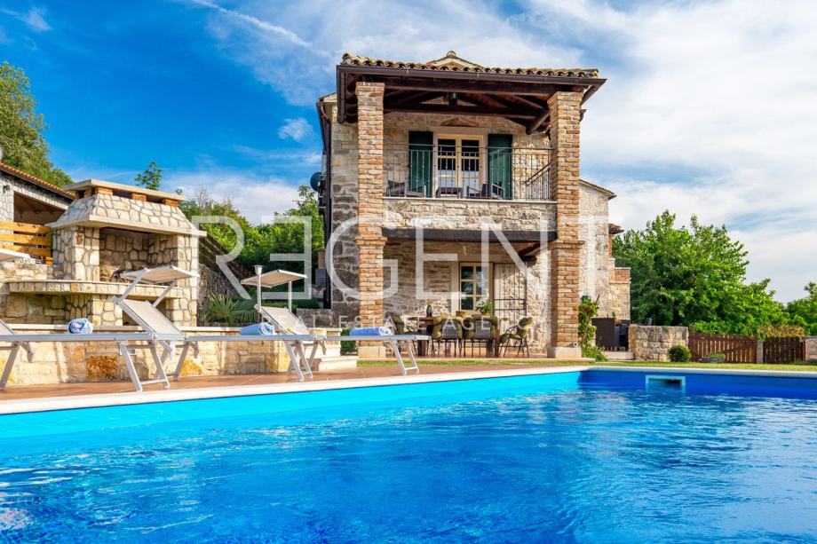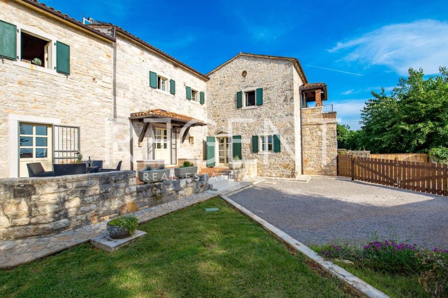 Ova šarmantna kamena istarska kuća, smještena pored Višnjana, predstavlja savršen spoj tradicije i modernog stila života. Smještena na rubu idiličnog sela, ova kuća pruža potpunu intimu i mir za sve one koji traže bijeg od gradske vreve.Kuća se sastoji od prostrane otvorene kuhinje i dnevnog boravka, u prizemlju se također nalazi i gostinjski WC, kao i ostava za pohranu stvari.Na prvom katu, ova kuća sadrži tri prekrasne spavaće sobe, svaka sa vlastitom kupaonicom, garderobom i balkonom koji pružaju predivan pogled na okolni krajolik. Sobe su opremljene modernim namještajem i vrhunskom posteljinom, a kupaonice su luksuzno uređene s najfinijim detaljima.Vanjski prostor ove kuće posebno će vas oduševiti. Kuća ima prekrasnu vanjsku kućicu za druženje i bazen koji su idealni za opuštanje i uživanje u suncu i toplini istarskog kraja. Kuća i bazen su kompletno obnovljeni 2014. godine te su opremljeni najnovijom tehnologijom.Uz svoju prekrasnu arhitekturu i moderne sadržaje, ova kamena istarska kuća savršeno je mjesto za odmor i bijeg od svakodnevnih briga.Kontaktirajte nas za više informacija!Za više informacija, kontaktirajte našeg agenta na brojeve telefona: