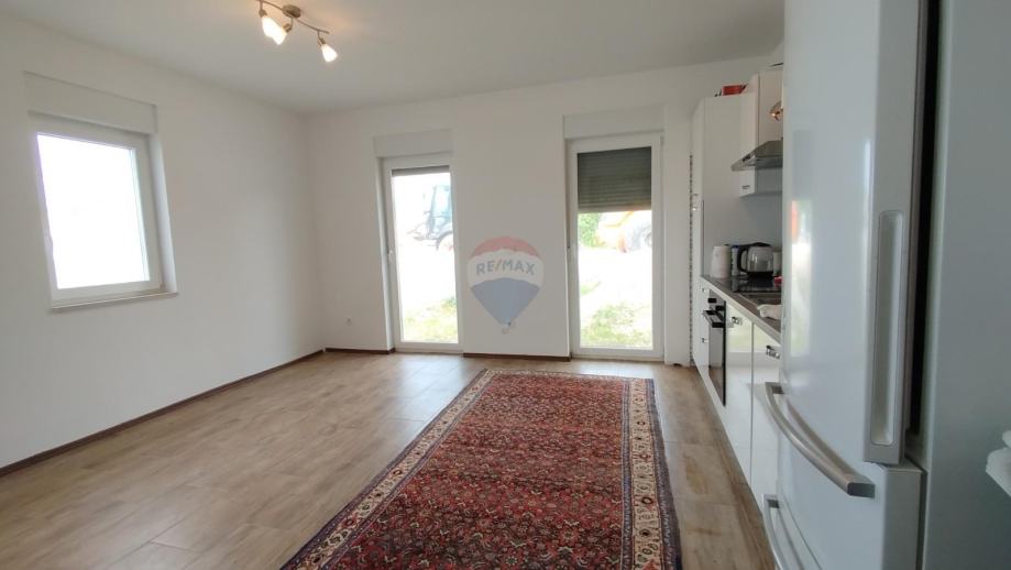 Na prodaju je stan u prizemlju kuće koja se sastoji od četiri stambene jedinice. Stan se nalazi u završnoj fazi izgradnje i ima ukupnu površinu od 118 m². Sastoji se od tri spavaće sobe, dnevnog boravka, kuhinje s blagovaonicom, kupaonice i dodatnog sanitarnog prostora.