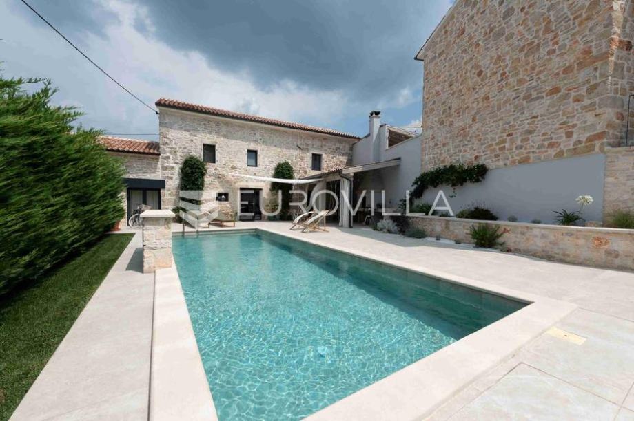 In one of the most beautiful parts of Vižinada, an authentic stone house with a swimming pool and an outdoor kitchen is for sale. This charming house offers the perfect blend of tradition and modern comfort and is spread over two floors:Ground floor:Covered entrance terraceLiving roomKitchen with...