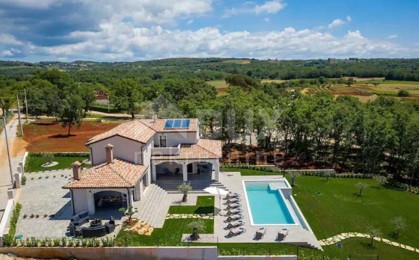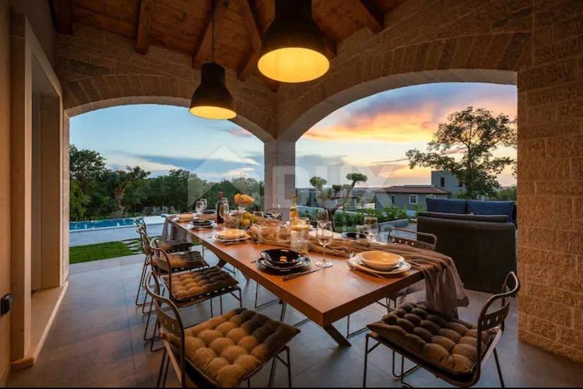 Nedaleko od mjesta Vižinada nalazi se ova luksuzna, moderna i rustikalna vila koja je izgrađena 2020. godine i smještena je na privatnoj parceli od 1600 četvornih metara s prekrasnim panoramskim pogledom na more.