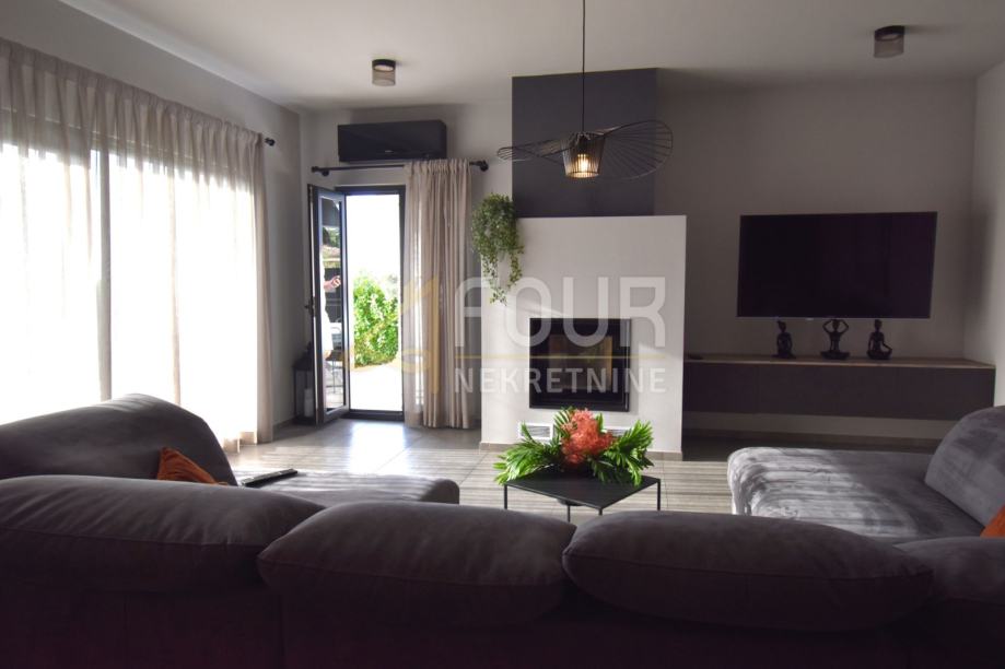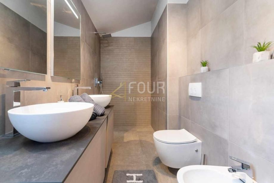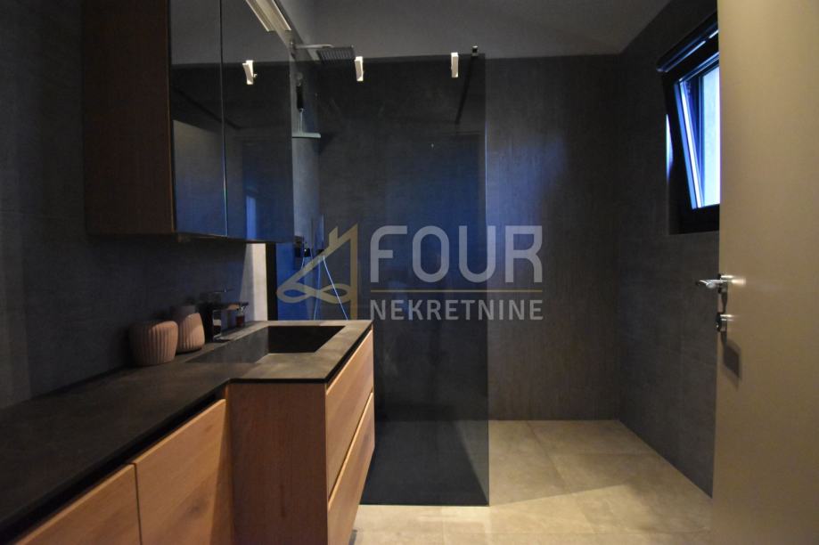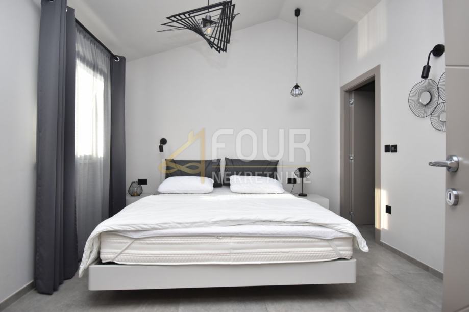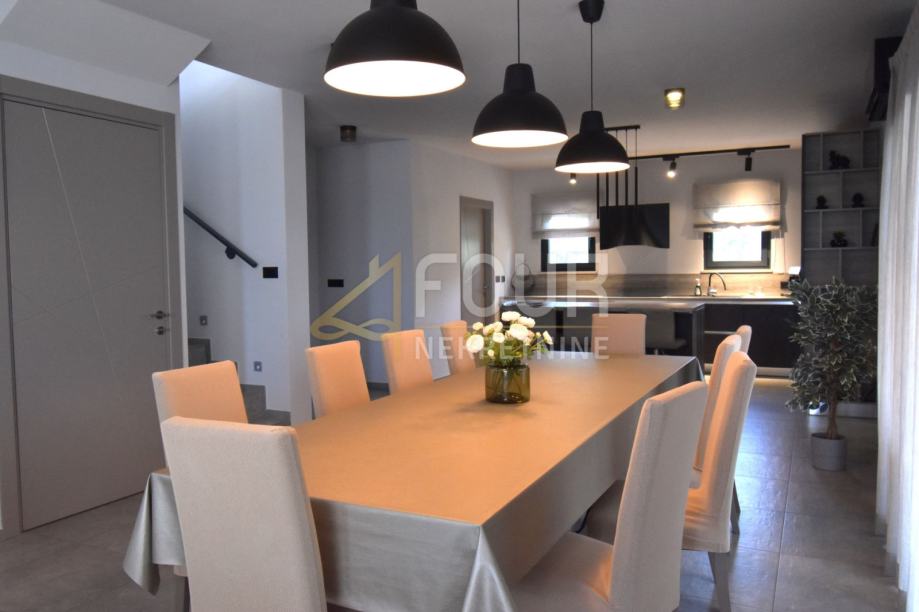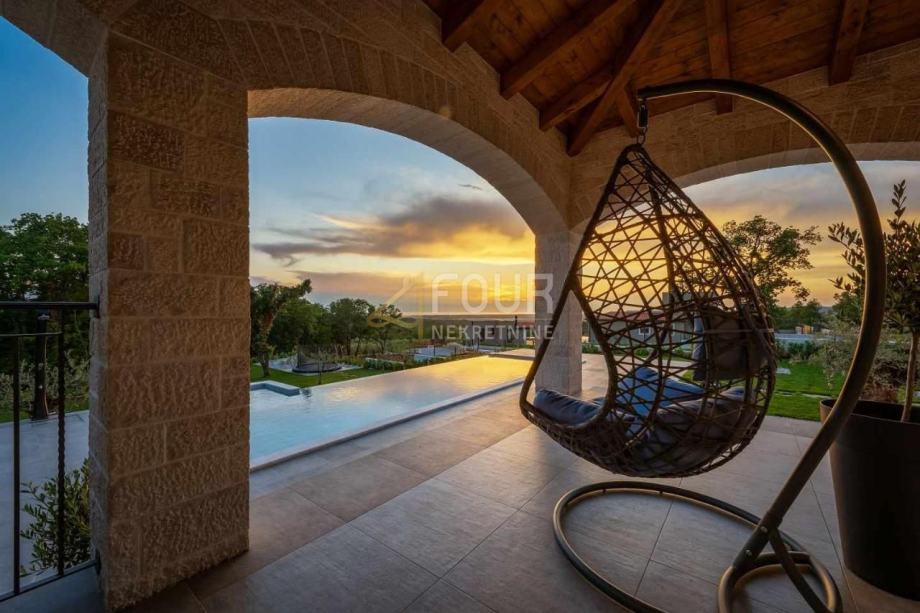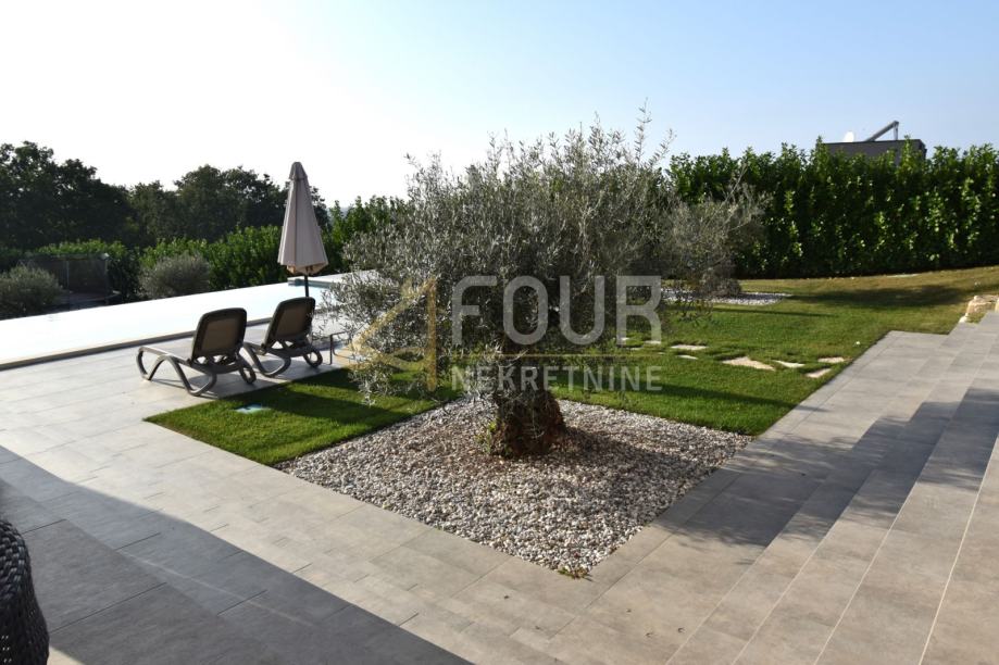 Vila je smještena na okućnici veličine 1.430m2 s infinity bazenom od 54m2, ljetnom kuhinjom, igralištem za badminton ili odbojku na travi.