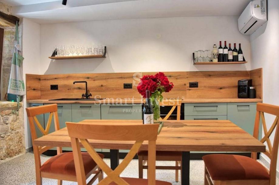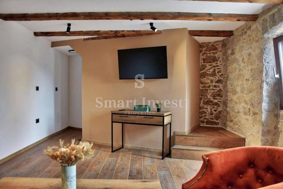 Kuća je kompletno renovirana 2023. godine - krov, struja, voda, sve na novo, stare grede pjeskarene, kamen očišćen izvana i iznutra, škure stare pjeskarene.