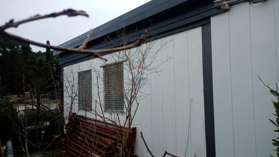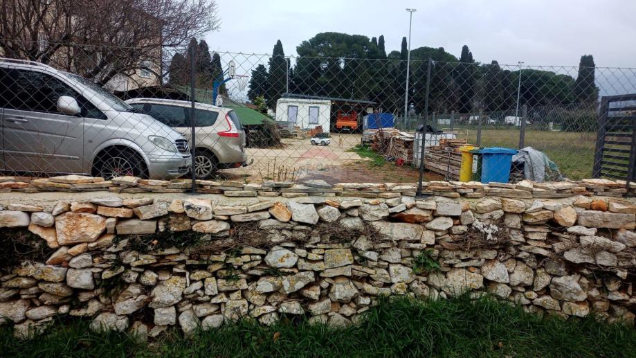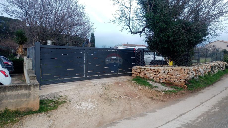 Zemljište je kompletno ograđeno s velikim kliznim portunom 5,5m širine a na zemljištu se nalazi kućica/skladište površine 60m2 sa solarnim panelima 5kw i baterijom. Sva infrastruktura za gradnju nalazi se ispred parcele. Pješačka udaljenost do centra Vodnjana.