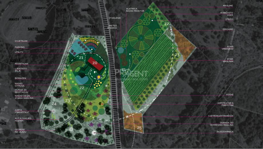 Stara kamena štala nalazi se na imanju površine 6133 m2 od čega je 431 m2 unutar građevinskog područja. Zamišljeno je kao eko imanje sa nasadima vinograda, maslina, raznog bilja i voćaka na dijelu koji se prodaje i dijelu privatnog zemljišta i u vlasništvu R Hrvatske koje se može kupiti ili dobiti u koncesiju.