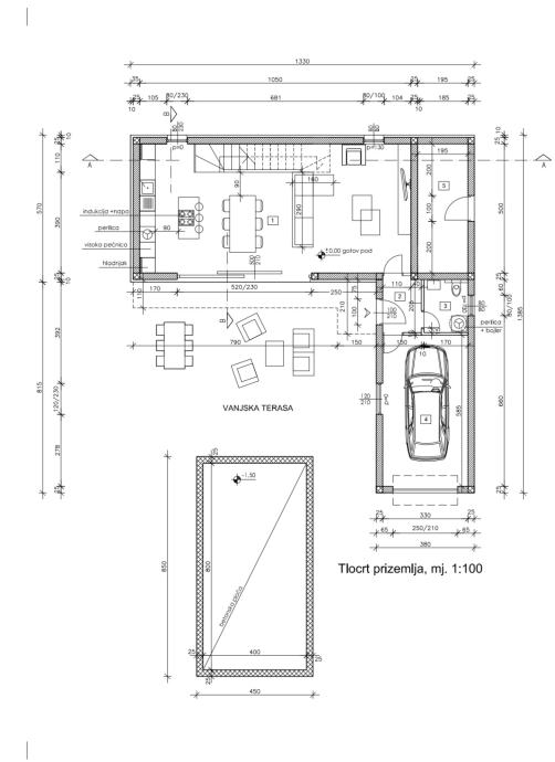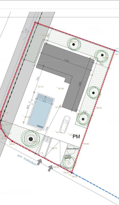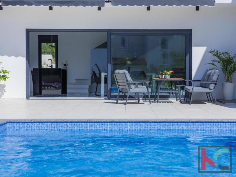 Okućnica je pravo malo privatno utočište, s pažljivo osmišljenim vanjskim prostorom koji uključuje automatizirani bazen dimenzija 8x4 m. Bazen je obložen keramičkim mozaikom, opremljen protustrujnim plivanjem i epoksi fugama za jednostavno održavanje. Osim bazena, na okućnici je osigurano više parkirnih mjesta za goste, što ovu nekretninu čini savršenom i za okupljanja s prijateljima ili obitelji.