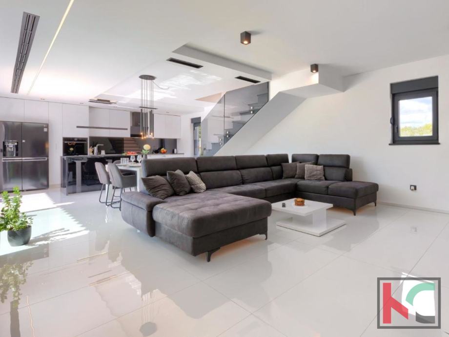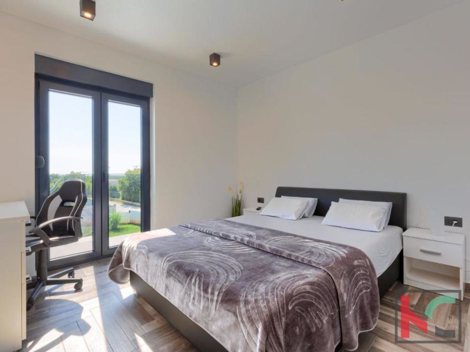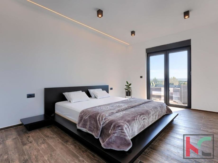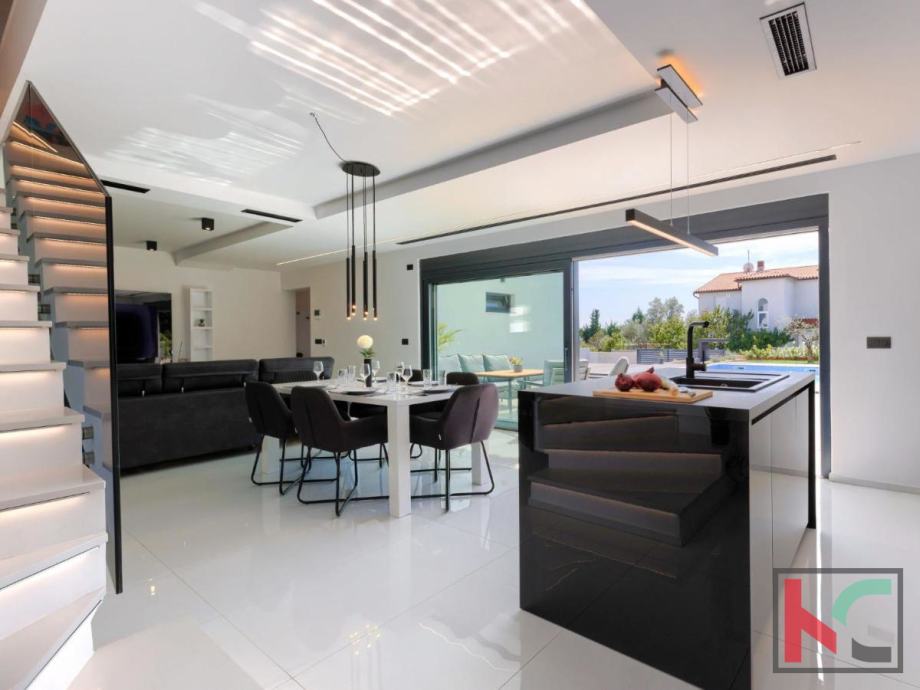U mirnom mjestu nedaleko od Vodnjana smještena je ova predivna moderna vila koja nudi savršenu kombinaciju udobnosti, luksuza i privatnosti. Prostire se na 174 m2 stambene površine, okružena prostranom okućnicom od 666 m2, idealnom za opuštanje i uživanje u prirodnom okruženju.