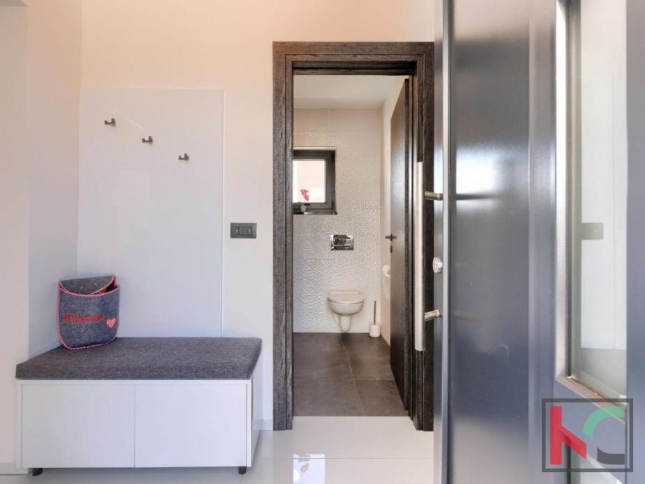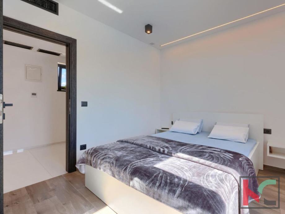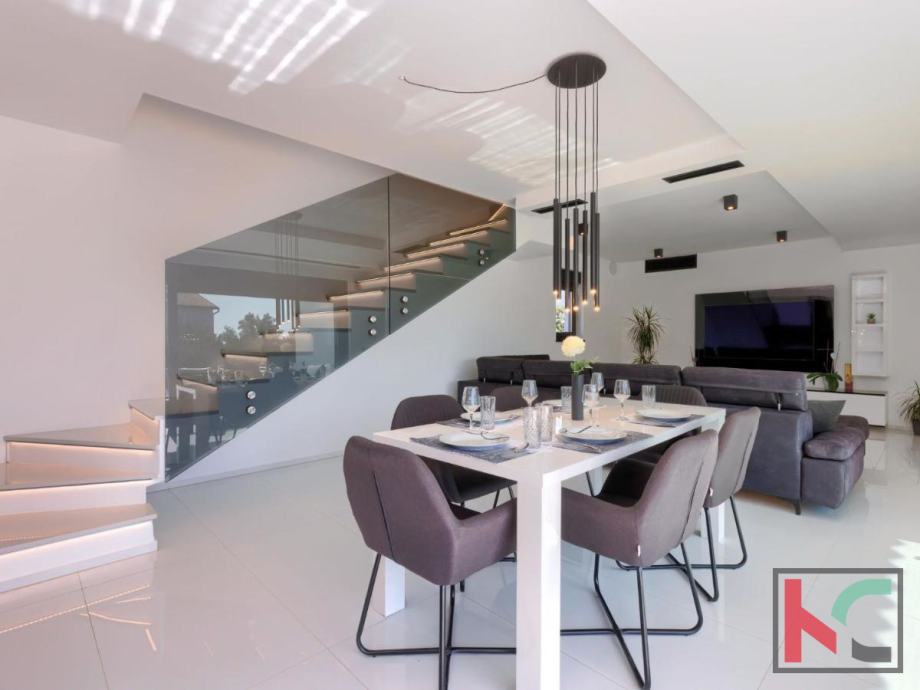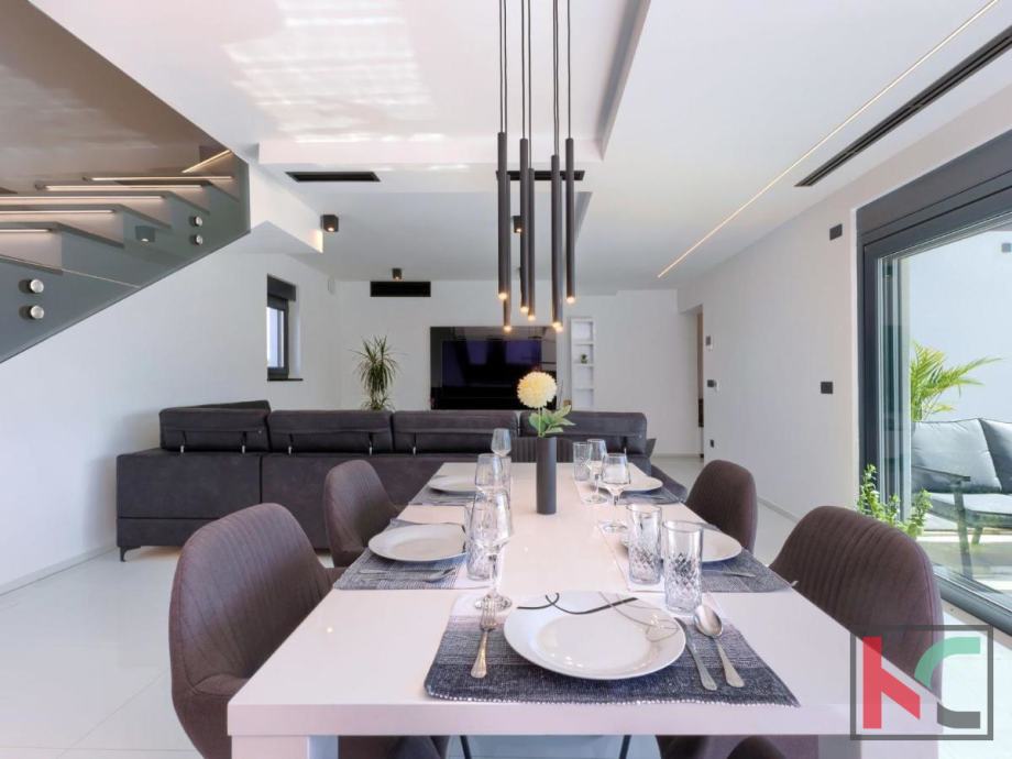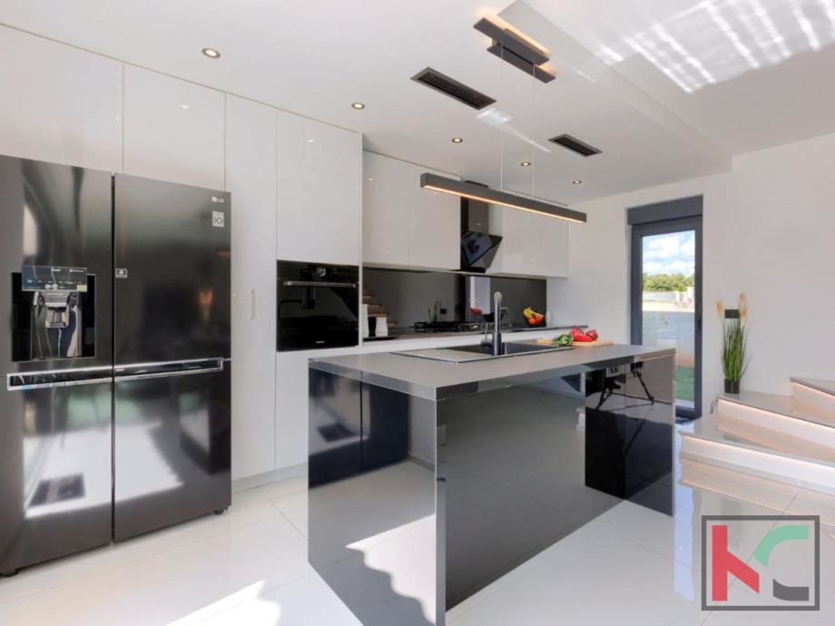Vila je opremljena najnovijim centralnim ventilacijskim sustavom grijanja i hlađenja koji omogućava brzo i učinkovito postizanje idealne temperature u svim prostorijama. Aluminijska stolarija osigurava dugotrajnost i visoku energetsku učinkovitost, dok su podovi obloženi prvoklasnim mramornim pločicama, što prostoru daje elegantan i profinjen izgled.