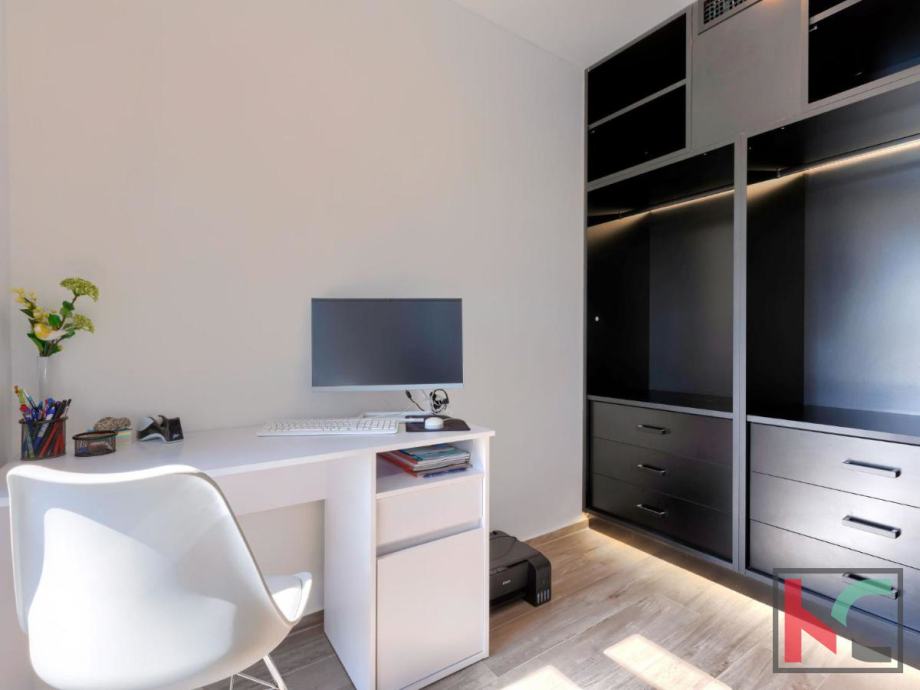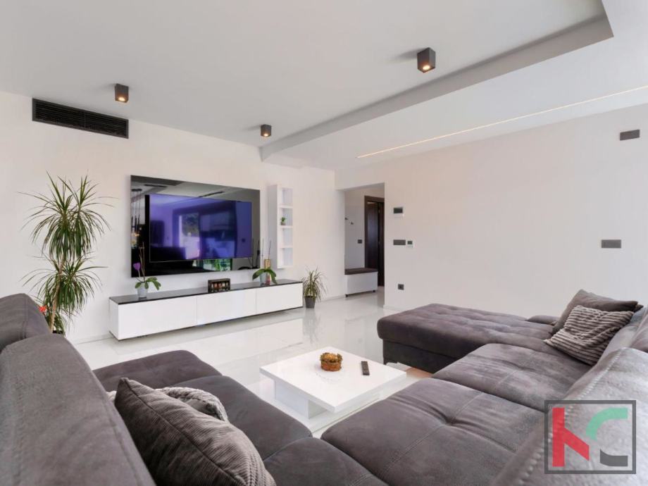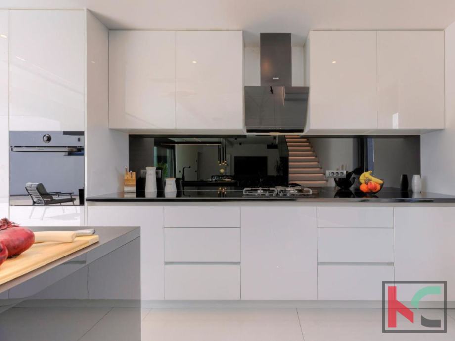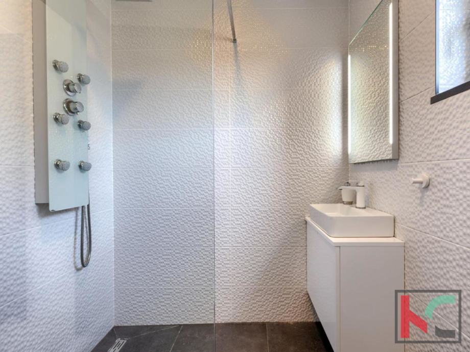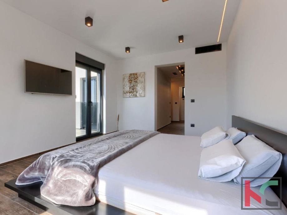 Vila je opremljena najnovijim centralnim ventilacijskim sustavom grijanja i hlađenja koji omogućava brzo i učinkovito postizanje idealne temperature u svim prostorijama. Aluminijska stolarija osigurava dugotrajnost i visoku energetsku učinkovitost, dok su podovi obloženi prvoklasnim mramornim pločicama, što prostoru daje elegantan i profinjen izgled.