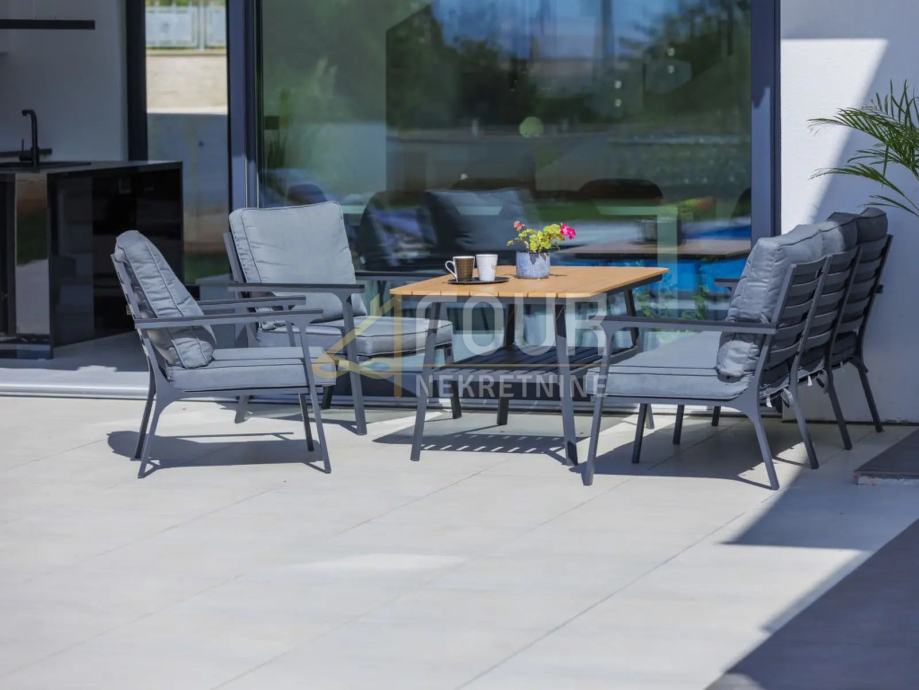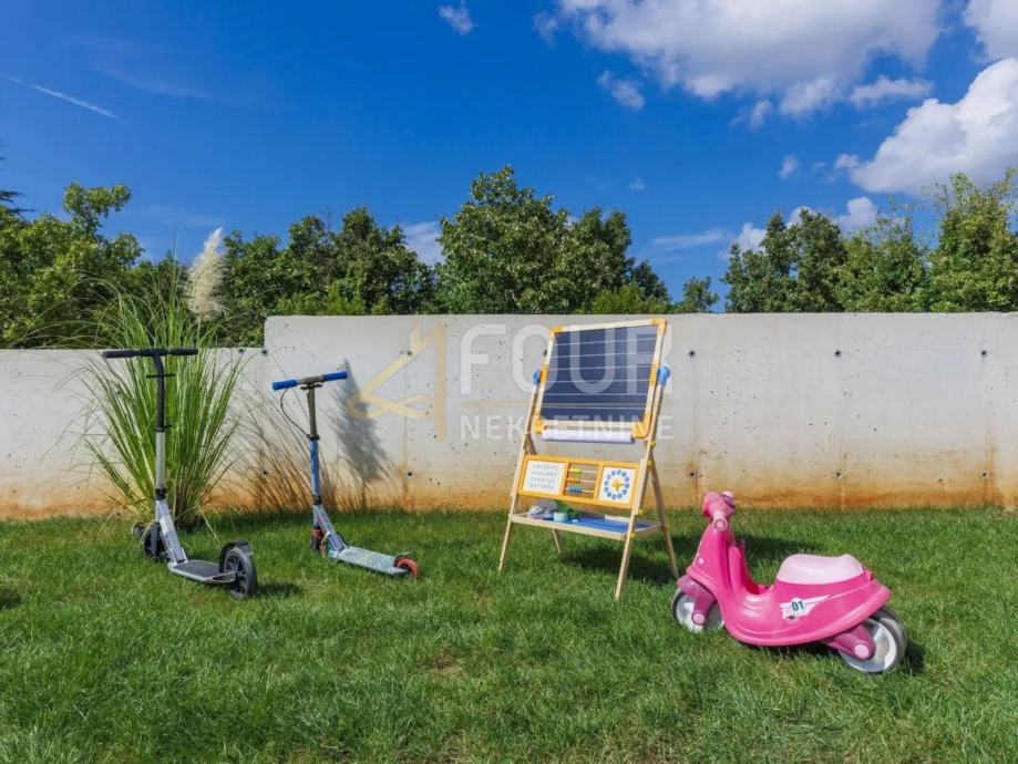 U ponudi imamo predivnu samostojeću kuću u Istri ukupne stambene površine 176m2. Na parceli površine 666m2 se nalazi bazen, garaža i veliko dvorište.
