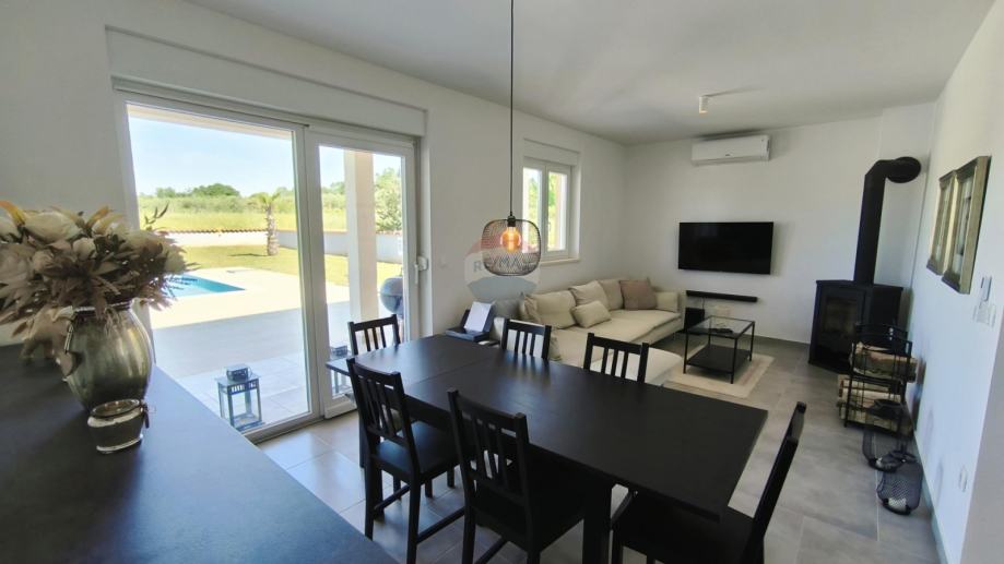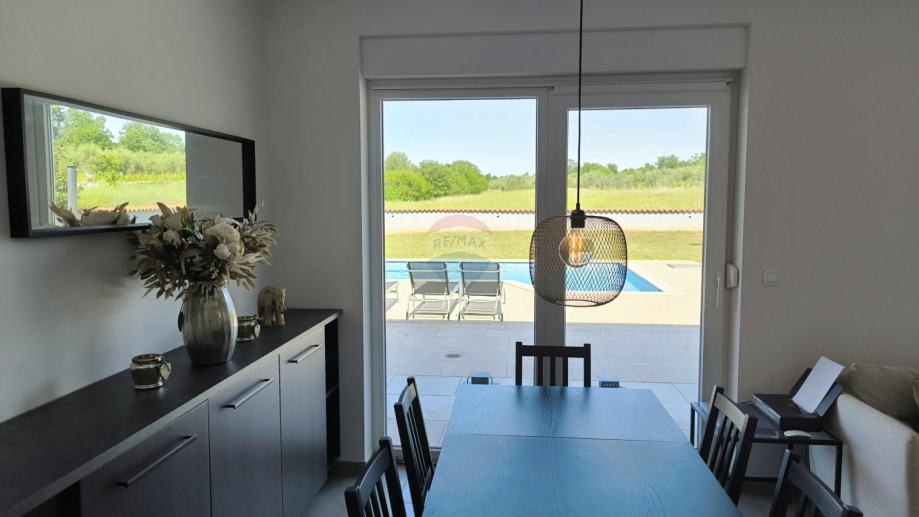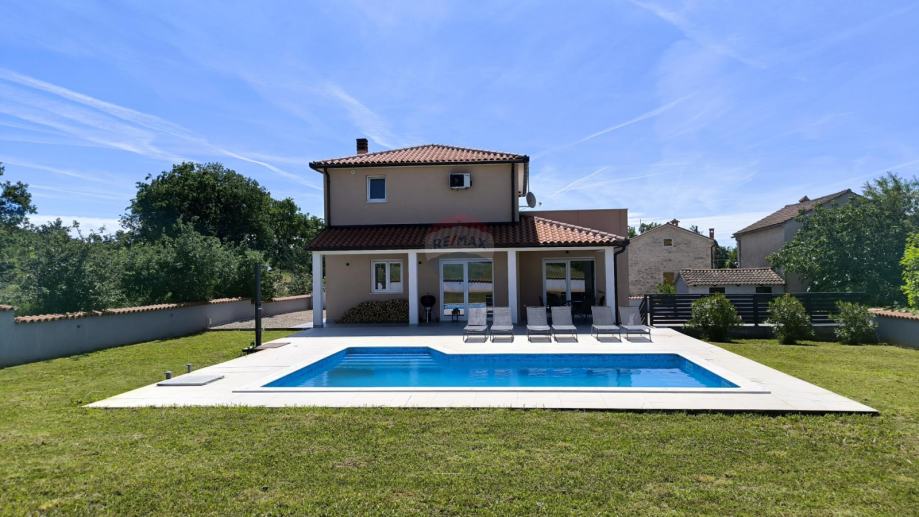 RE/MAX Centar nekretnina izdvaja iz svoje ponude elegantnu i modernu vilu s bazenom, smještenu na predivnoj i mirnoj lokaciji u okolici Vodnjana.
