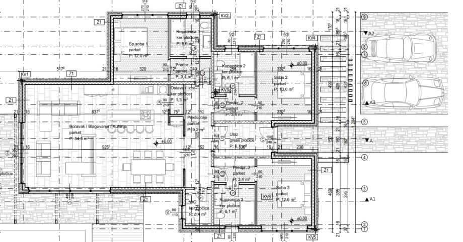 Vile su predviđene kao prizemnice koje se sastoje od kuhinje s blagovaonicom i dnevnim boravkom, 3 spavaće sobe, svaka sa svojom kupaonicom, wc-a i ostave.