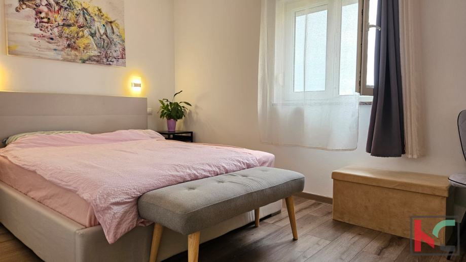 Stan je kompletno uređen i namješten te vrlo ugodan. U vlasništvu nekretnine su i dva parkirna mjesta te dio okućnice ispod balkona.