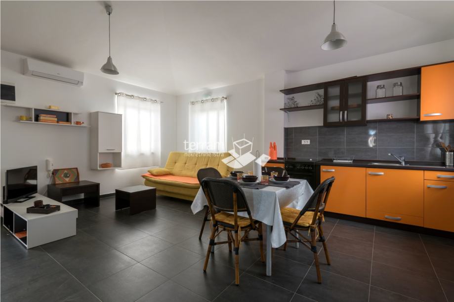 Drugi stan se sastoji od dvije spavaće sobe, kuhinje i dnevnog boravka sa balkonom, loggie, kupaonice te prostrane terase od 70m2.