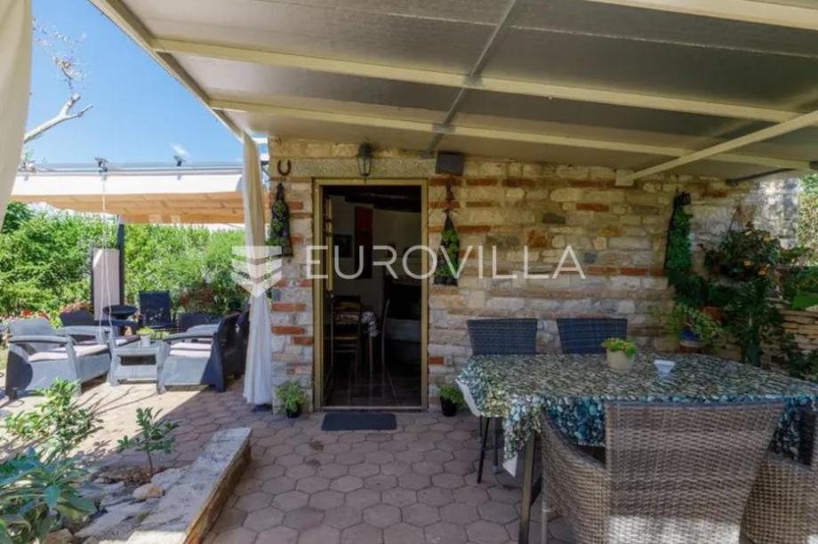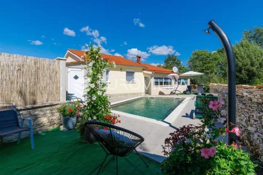 Na mirnoj lokaciji u okolici Vodnjana smjestila se ova samostojeća prizemnica s bazenom i konobom. Izgrađena 2007. godine, ova kuća površine 162 m2 nudi prostrani dnevni boravak s blagovaonicom i izlazom na zatvorenu terasu koja nudi dodatne društvene sadržaje, potpuno opremljenu kuhinju s...