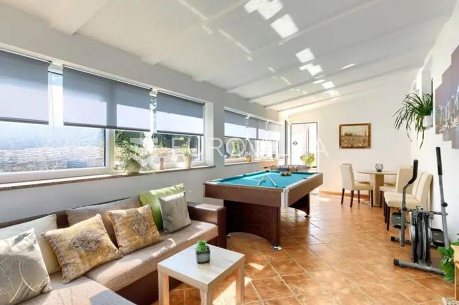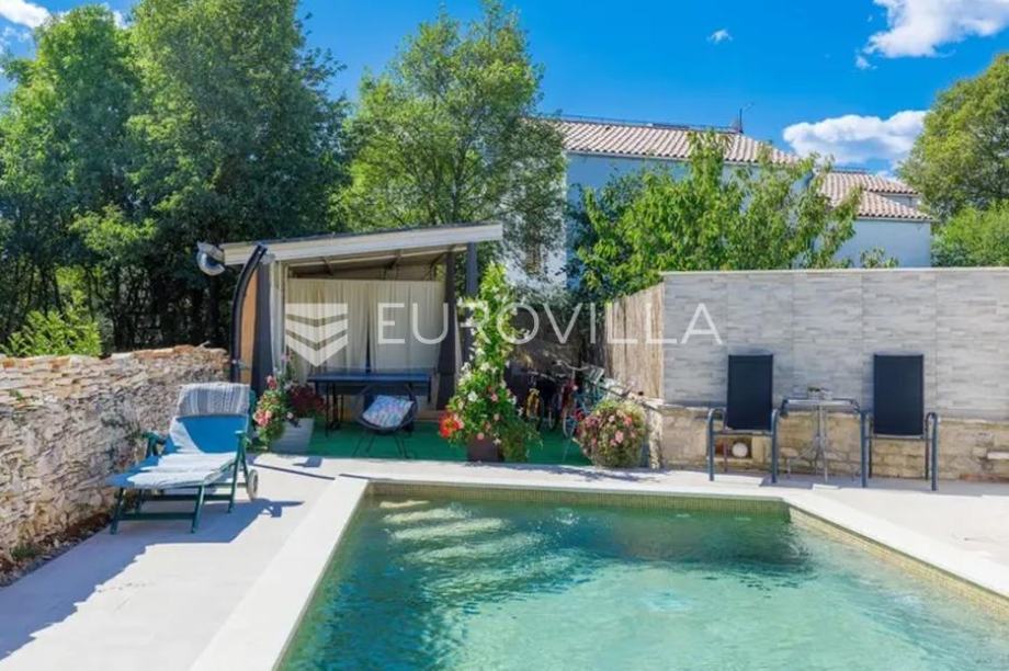 In a quiet location near Vodnjan, this detached single-story house with a pool and tavern is situated. Built in 2007, this 162 m² house offers a spacious living room with a dining area and access to an enclosed terrace that provides additional social amenities, a fully equipped kitchen with a...