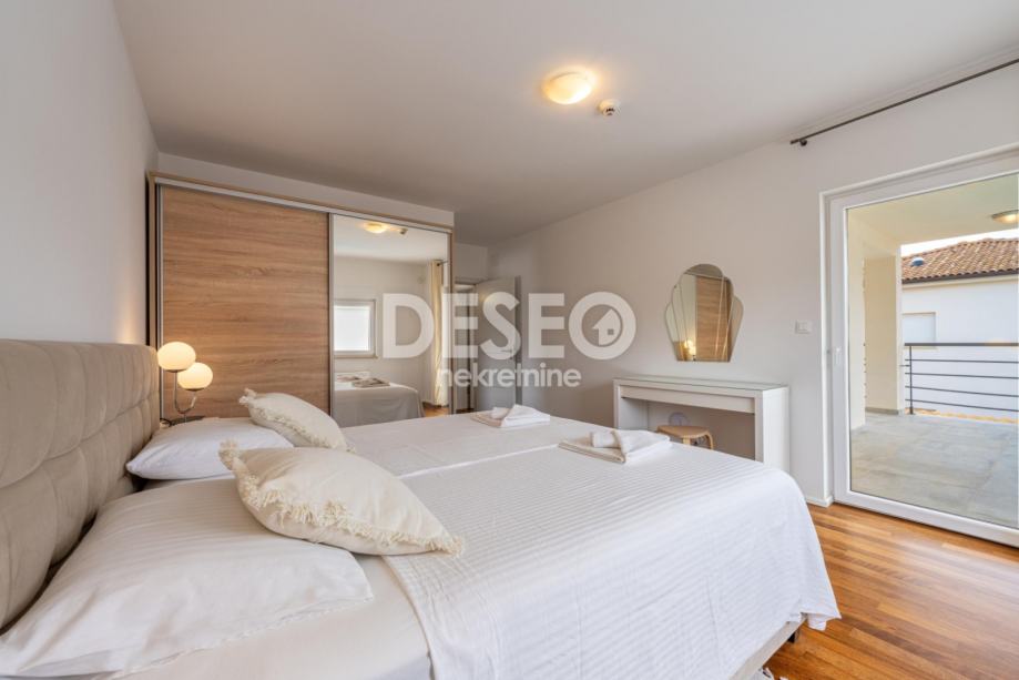 - 1. kat : master spavaća soba s kupaonom, dvije spavaće sobe, kupaona i velika terasa kojoj imaju pristup dvije spavaće sobe.