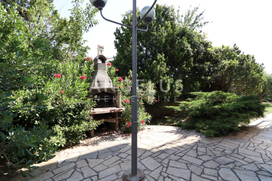 Dvorište oko kuće je ukupne površine 643 m2 te središnje mjesto zauzima prostrani bazen. U sklopu okućnice također postoji terasa i roštilj. Kuća posjeduje i garažu u suterenu kojoj se pristupa sa ceste. Kuća je održavana te su mogućnosti za uređenje u namjenu višestruke.