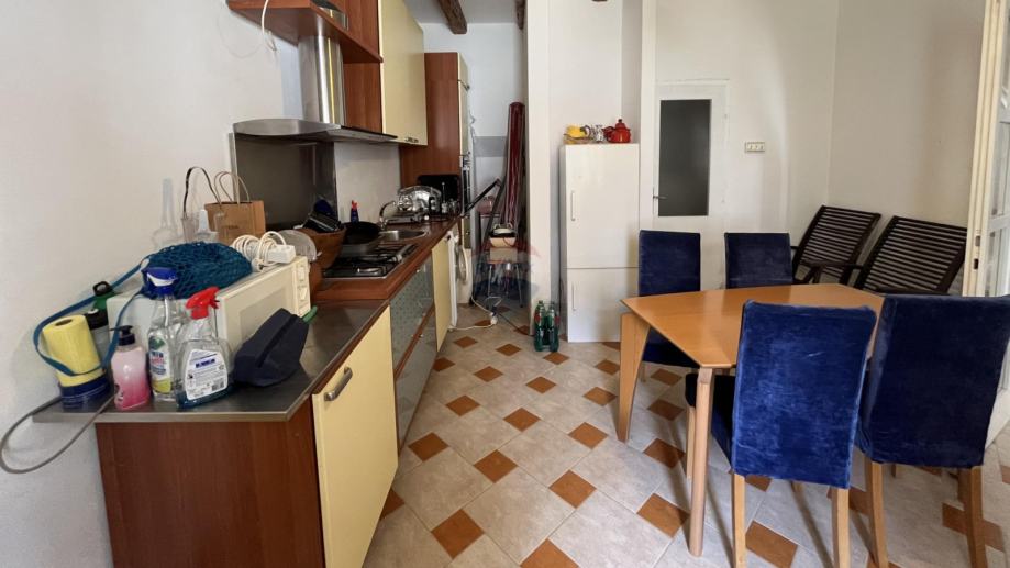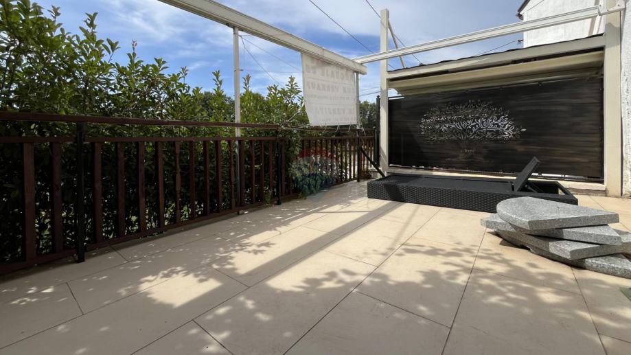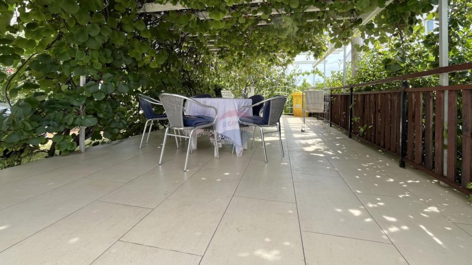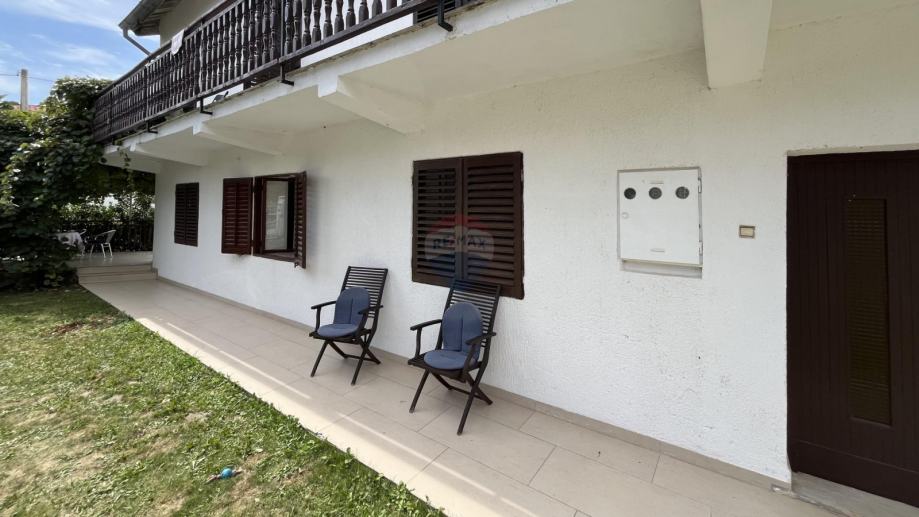 ReMax centar nekretnina iz svoje ponude izdvaja dvojnu kuću sa vlastitom okućnicom. Kuća se nalazi u mirnom susjedstvu, proteže se na dvije etaže uz potkrovlje koje je potrebno urediti. Kuća ukupne površine 250 m2 sastoji se od ulaznog hodnika i dvije kuhinje sa dnevnim boravcima u prizemlju, na prvom katu nalazimo 5 spavaćih soba i tri kupaonice te malu ostavu i balkon koji se proteže cijelom duljinom kuće. Potkrovlje je neuređeno. Ispred kuće se prostire ograđeno dvorište veličine 103 m2. U blizini se nalaze i uređene plaže te sva potrebna infrastruktura za svakodnevni život.