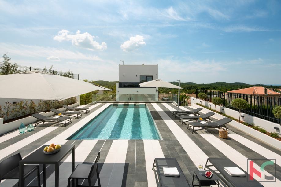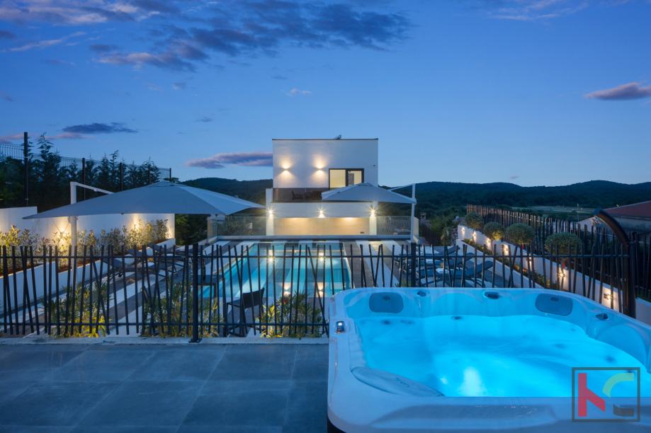 Vila se ponosi svojom mirnom lokacijom i predivnim pogledom na more, što je čini idealnim izborom za one koji traže sklad s prirodom. S prostranim dvorištem i uređenom okućnicom, ova nekretnina pruža savršeno mjesto za opuštanje uz grijani bazen ili jacuzzi, a za ljubitelje sporta tu je i multifunkcionalno igralište te tenis teren.
