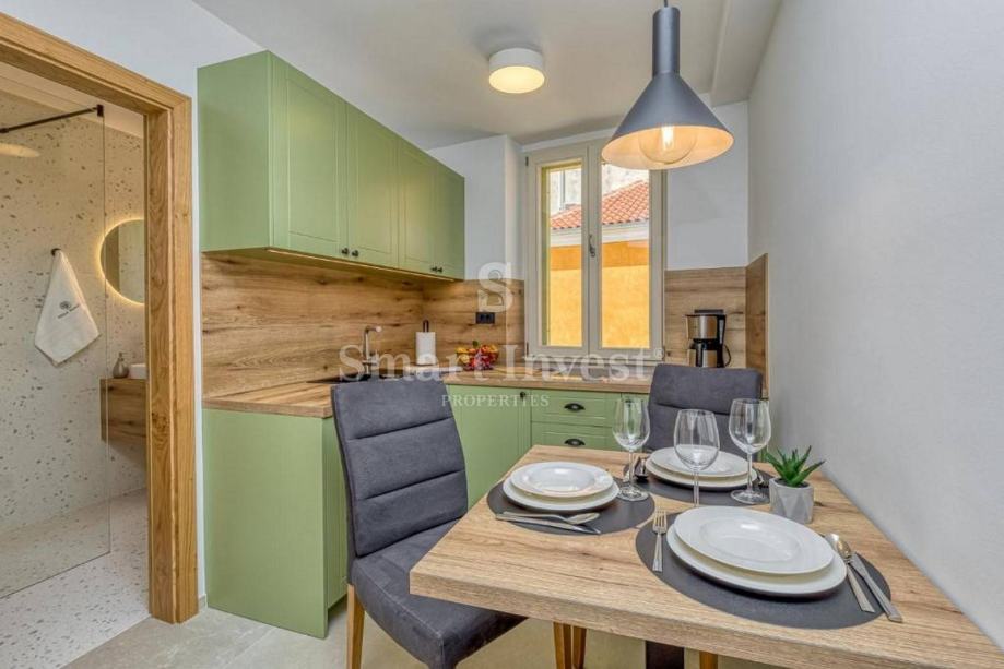 Prodaje se prekrasna autohtona kuća sa apartmanima u centru grada. Kuća je lijepo uređena, svi apartmani su novo renovirani. Kuća se sastoji od četiri cjeline, međusobno povezane unutarnjim stepenicama. Svaki stan i podrum imaju oko 30 m2 te se sastoje od jedne spavaće sobe, potpuno opremljene kuhinje i vlastite kupaonice.