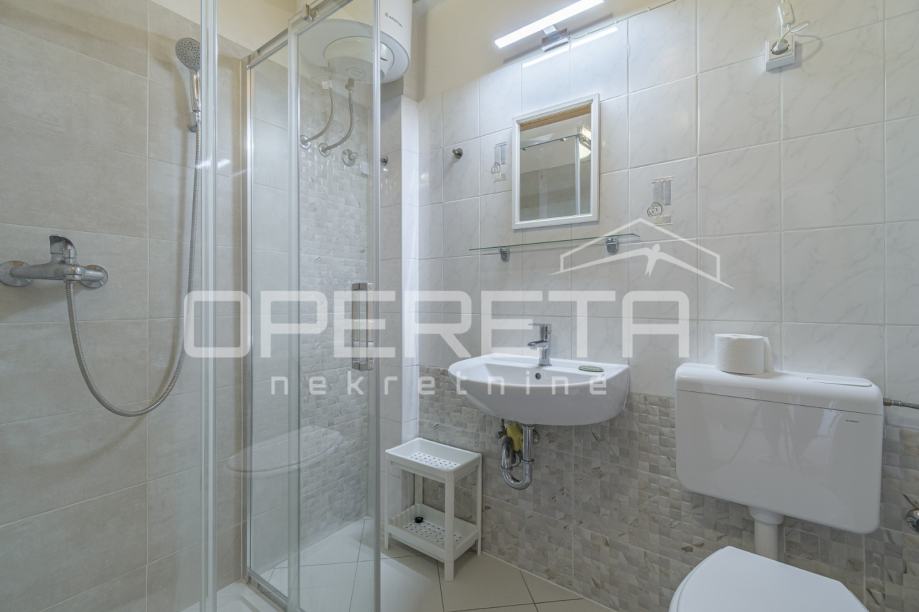 Ovaj je nekretnina opremljena klima uređajem za ugodnu temperaturu tijekom cijele godine, a poseban šarm mu daje francuski balkon s kojeg se pruža prekrasan, umirujući pogled na okolno zelenilo. Idealno mjesto za uživanje u jutarnjoj kavi ili opuštenim večernjim trenucima. Stanu pripada i korištenje vrta u prizemlju zgrade, i prodaje se potpuno namješten.