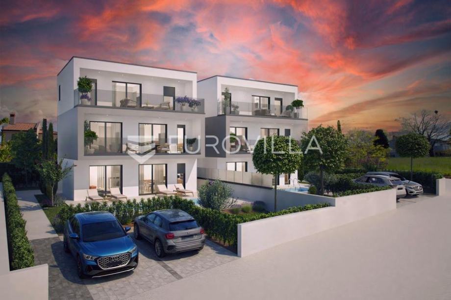 U mirnom naselju, svega 10 minuta vožnje od Poreča, smjestila se ova moderna i funkcionalna dvojna kuća.Proteže se na dvije etaže i u 168 m2 stambenog prostora pruža idealan raspored. Prizemlje se sastoji od natkrivenog ulaza, ulaznog hodnika, gostinjskog WC-a, spremišta te open space...