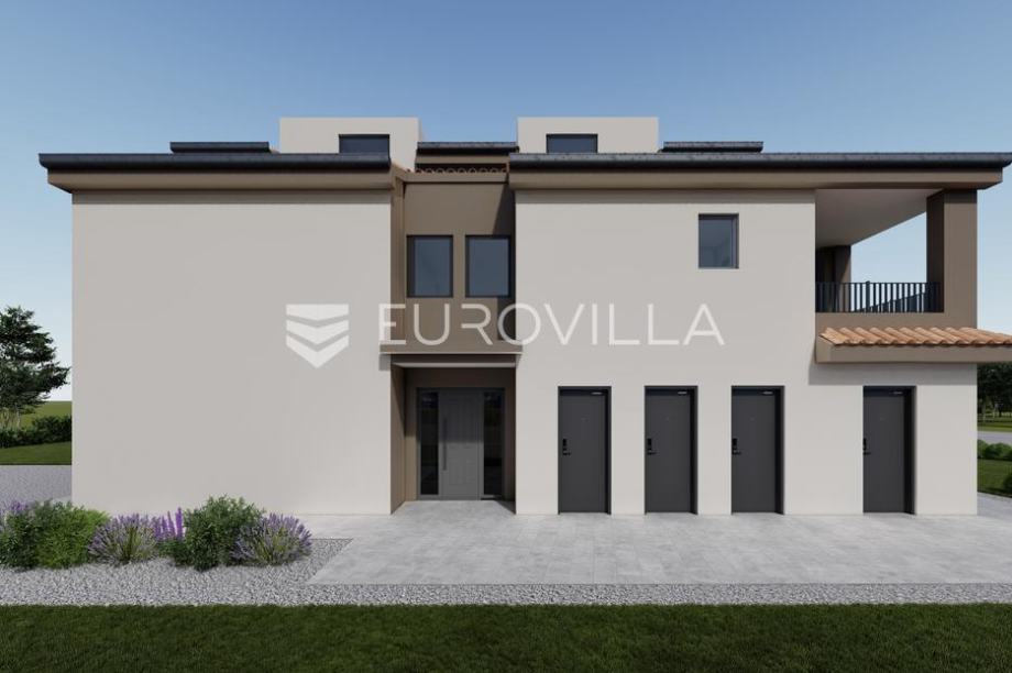 Not far from Poreč is a newly built house with 5 residential units. Apartment A is located on the ground floor, living area 50.42 m2, storage room 3.58 m2, yard 360 m2, and parking space. The apartment consists of an entrance hall, open living room, kitchen, dining room with access to the terrace,...
