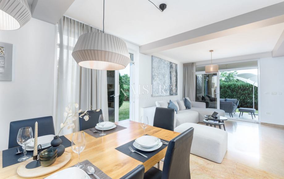 U prizemlju vile nalazi se grijani unutarnji bazen površine 28 m², dok se u eksterijeru smjestio dodatni bazen od 32 m². Uz to, budući vlasnik može uživati u infracrvenoj sauni, prostoru za opuštanje, te brojnim sadržajima za zabavu – stolni tenis, stolni nogomet, pikado, kao i sportski kutak u vrtu s mogućnošću igranja nogometa ili badmintona. Tu je i dječje igralište, čime vila postaje idealno mjesto za obiteljski život.