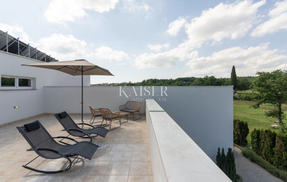Kaiser Immobilien s ponosom predstavlja suvremenu vilu u izgradnji, smještenu u Žminju – idiličnom mjestu u samom srcu Istre. Ovaj kraj poznat je po netaknutoj prirodi, autentičnom istarskom ugođaju, lokalnim proizvodima i životu daleko od gradske vreve. Upravo ovdje, u zelenilu i tišini, nastaje moderna rezidencija koja savršeno spaja udobnost, eleganciju i funkcionalnost.
