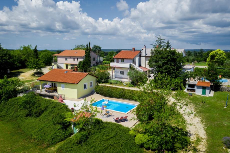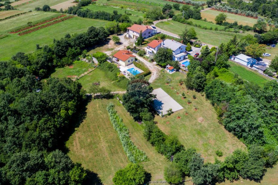 Imanje je prometno vrlo dobro povezano (blizina istarskog ipsilona 3km), u prekrasnom zelenom krajoliku, mirno je mjesto idealno za život velike obitelji ili kompleks već pripremljen za iznajmljivanje (kategorizirani apartmani s bazenima) s prikladnim sportsko-rekreativnim sadržajima i vlastitim poslovnim prostorom koji omogućuje otvaranje biznisa ili daljnje iznajmljivanje.