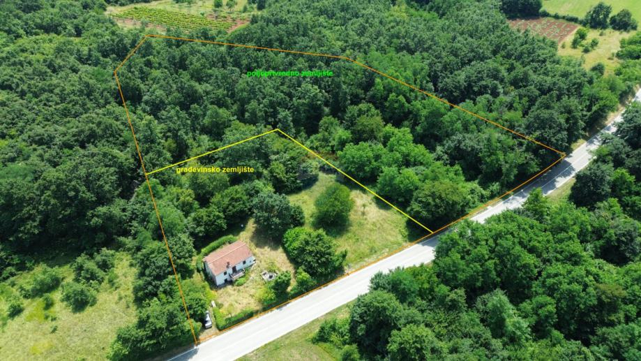 Prodaje se stara Istarska kuća na parceli od ukupno 10.716 m2, u naravi šuma, pašnjaci i oranice, a od koji je 2.525 m2 građevinsko zemljište sa vlastitim pristupom. Pristup parceli i kući je moguć s glavne prometnice ili sa sporednog poljskog puta iza kuće. Na samoj parceli se nalazi infrastruktura i to telefon, struja, voda. Površina zemljišta je djelomično očišćena, pogodna za gradnju, rekonstrukciju postojećeg objekta ili izgradnju dodatnih objekata, poput bazena, ljetne kuhinje i slično. Kuća je spojena na električnu mrežu te ima cisternu sa hidroforom. poterbno je spojiti na vodovodnu mrežu, mjesto priključka je na samoj parceli iza kuće.