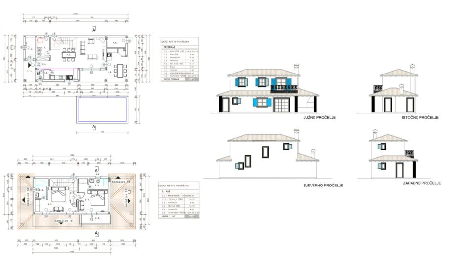 Unutrašnjost je projektirana s naglaskom na prostranost i funkcionalnu eleganciju. Ulazni foyer vodi prema otvorenom konceptu dnevnog prostora gdje se kuhinja, blagovaonica i salon prirodno nadovezuju na natkrivenu terasu i bazensku zonu. Dvije luksuzne spavaće suite jedinice, svaka s vlastitom kupaonicom, osiguravaju intimnost i komfor, dok dodatni toalet za goste podiže razinu praktičnosti. Diskretno integrirani tehnički prostori – uključujući strojarnicu, kotlovnicu i vešeraj – omogućuju besprijekorno funkcioniranje doma bez narušavanja estetike interijera.