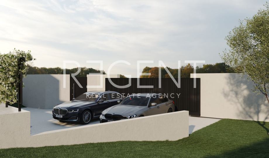 Prodaje se moderna, elegantna prizemnica s bazenom u srcu Istre, idealna za obiteljski dom ili kuću za odmor. Kuća je projektirana i dizajnirana s naglaskom na udobnost, funkcionalnost i visokokvalitetne materijale, a prema standardima za kategorizaciju kuće za odmor s 4 zvjezdice. Kuća se nalazi u središnjoj Istri, nedaleko od Žminja. Površina same kuće iznosi 106 m2.Raspored prostorija:Ulazni hodnikSpremište (utility): prostor za perilice, sušilice, veliki ormar, unutarnje jedinice dizalice topline i omekšivača vodeWCDvije spavaće sobe (15 m² svaka) s vlastitim kupaonicama, svaka s izlazom na terasu i bazenVeliki open space prostor koji uključuje kuhinju s otokom, blagovaonicu i dnevni boravak s kaminom, također s izlazom na terasuVelika terasa koja se sastoji od vanjske kuhinje, natkrivenog dijela, bazena dimenzija 8×3 (elektroliza) i sunčalištaParking s punionicom za el. automobile, na kojeg stane minimalno 3 vozilaPrednosti:Visokokvalitetni materijali, protupožarna i protupotresna gradnjaKvalitetni aluminijski prozoriPodno grijanje u cijeloj kućiKvalitetan sustav grijanja i hlađenja (dizalica topline, klime)Omekšivač vodeProtuprovalna vrataNadzorne kamere i alarmni sustavBazen s uređajem za elektrolizuVanjsko spremište u sklopu strojarnice bazenaPunionica za el. automobileMogućnost postavljanja solarnih panelaKupcima se nudi mogućnost odabira keramike, sanitarija, podova i sobnih vrata prema vlastitim željama.Mogućnost kupnje kuće s namještajem kako je prikazano u vizualizacijama. Mogućnost kupnje bez namještaja.Završetak radova 12/2025.Kontaktirajte nas za više informacija! Za više informacija, kontaktirajte našeg agenta na brojeve telefona: