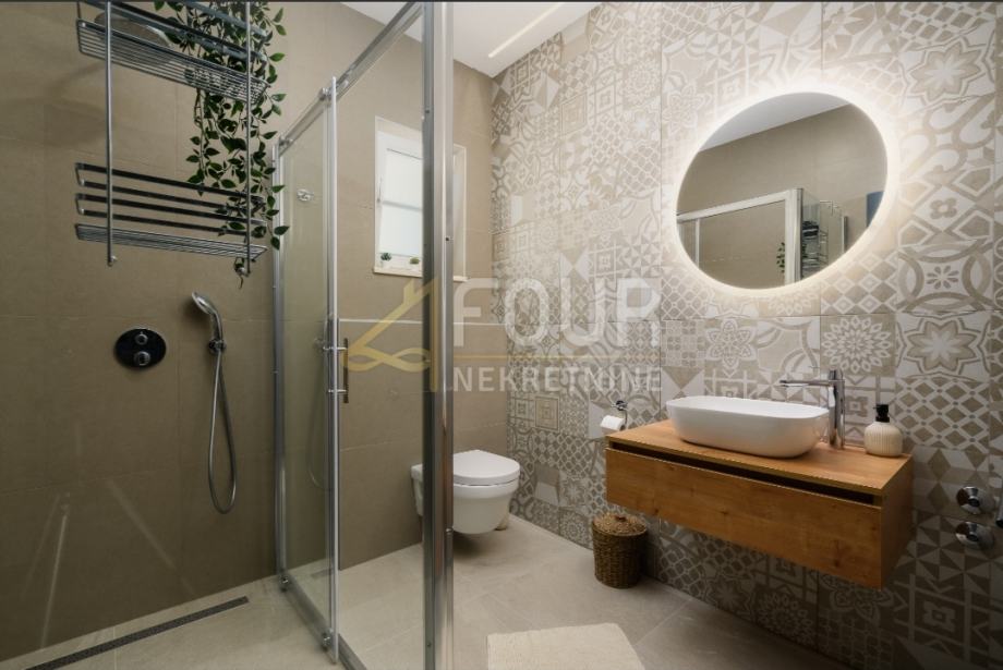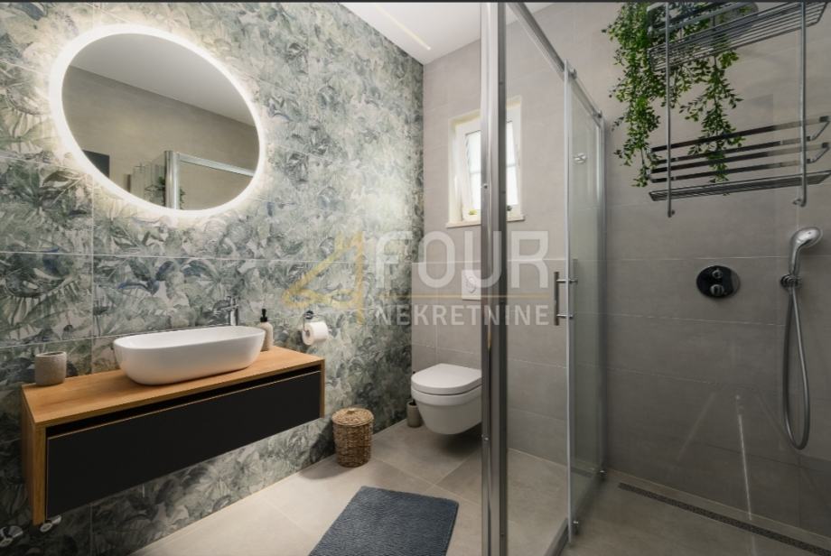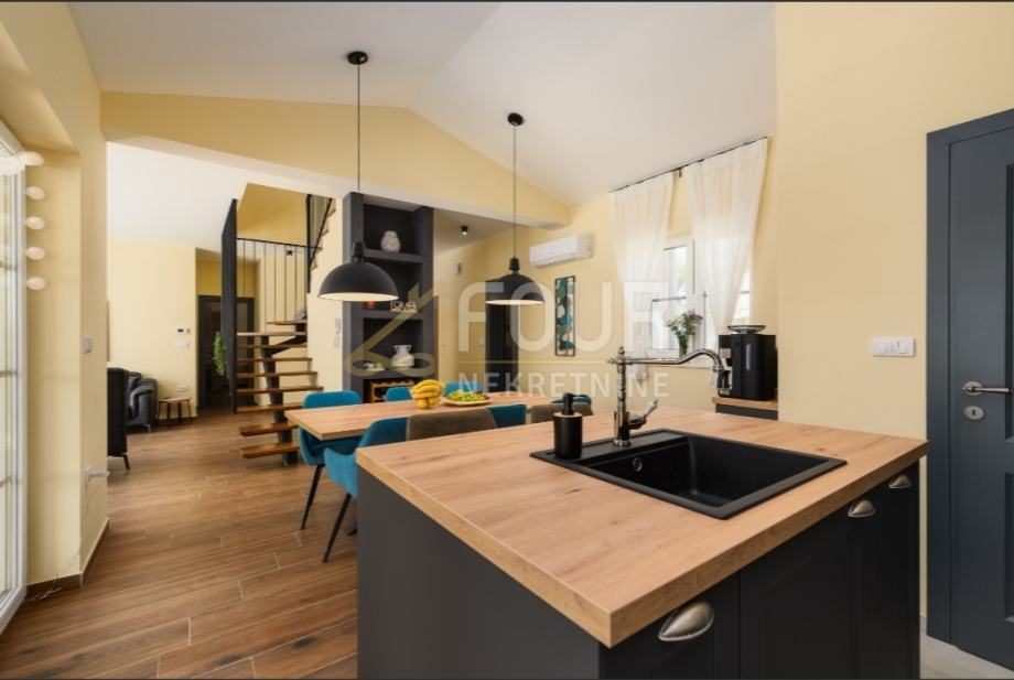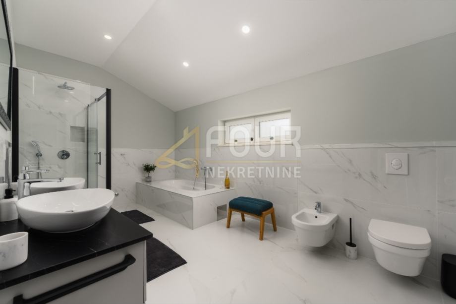 Ukupna stambena površina kuće iznosi 186 m2, smještenih na parceli od 718 m2 s lijepo uređenom okućnicom. U sklopu dvorišta nalaze se i zaseban studio apartman od 25 m2 te privatni bazen površine 38 m2, koji dodatno naglašavaju ekskluzivnost ove nekretnine.