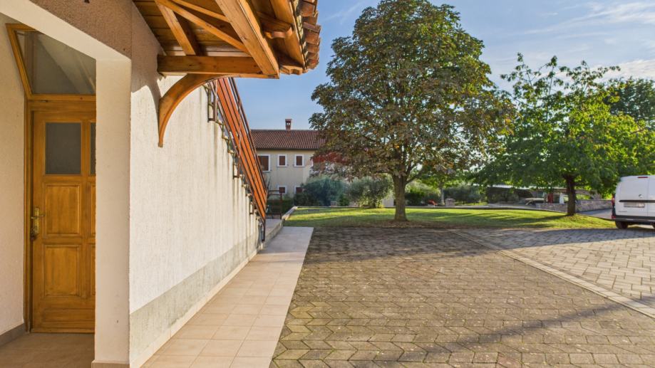 U naselju Lukovica u Žminju prodajemo ovaj komforan stan ukupne površine 90 m2, u prizemlju zgrade koji ima vlastiti dio okućnice, veliki parking za automobile i pomoćni objekt, ljetna kuhinja/konoba.