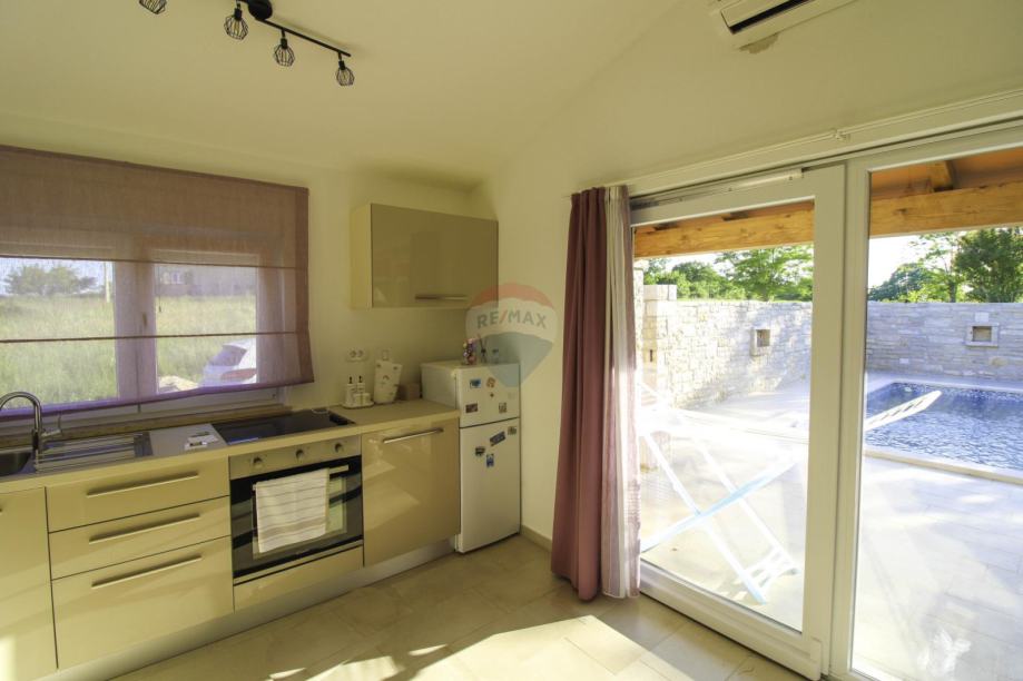 Prodajemo dvije kuće koje čine jednu cjelinu te su u potpunosti uređene, opremljene i kategorizirane za turistički najam. Obje kuće zajedno imaju 100 kvadrata a sastoje se od dnevnog boravka s kuhinjom i blagavaonicom, spavaće sobe i kupaonice dok druga uz dnevni boravak s kuhinjom i blagavaonicom i kupaonicom jednu spavaću sobu. Obje kuće imaj zajedničku terasu i bazen.