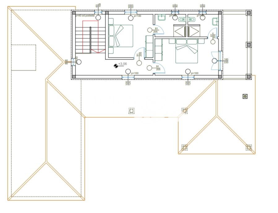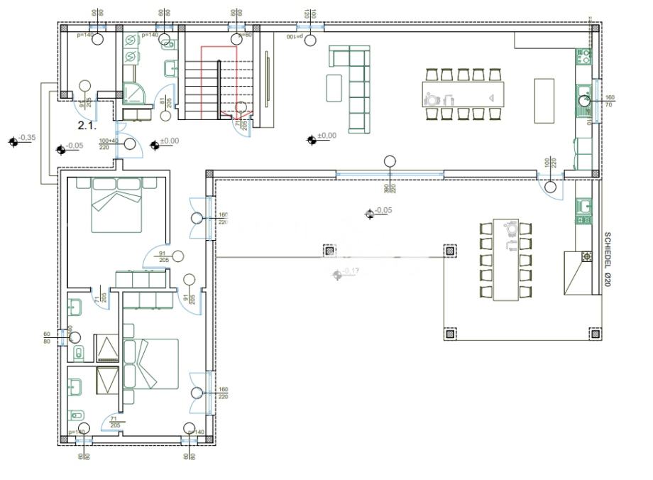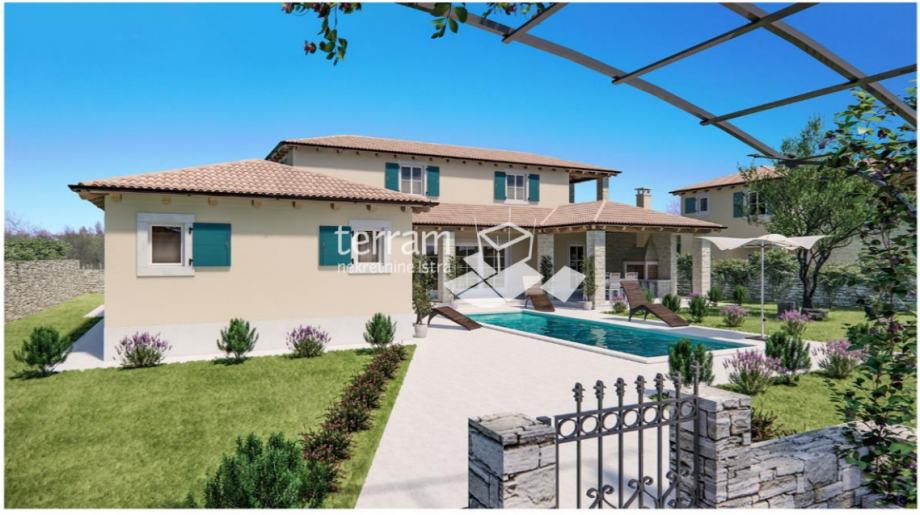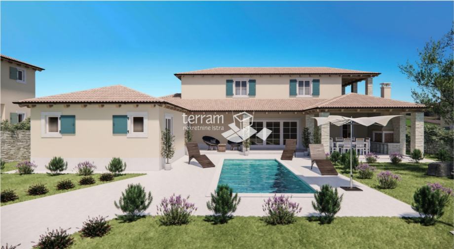 Istra, Žminj prodaje se Vila u izgradnji. Prostire se na okućnici od 911m2 te se sastoji od prizemlja i prvog kata. U prizemlju se nalazi: ulazni hodnik, dvije spavaće sobe svaka s vlastitom kupaonicom, spremište, zasebna kupaonica, kuhinja s blagavaonom i velikim dnevnim boravkom s izlazom na natkrivenu terasu i bazen. Unutarnje stepenice vode na prvi kat gdje se nalaze dvije spavaće sobe svaka sa svojom kupaonicom. Kuća će biti opremljena vrhunskom stolarijom, keramikom te grijanje i hlađenje. Predviđena su tri parkirna mjesta. Udaljenost od autoputa 4km, a od Rovinja 20km.