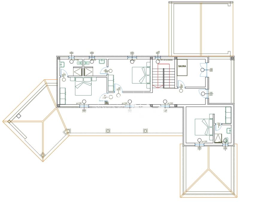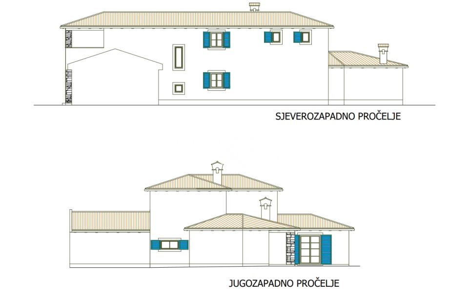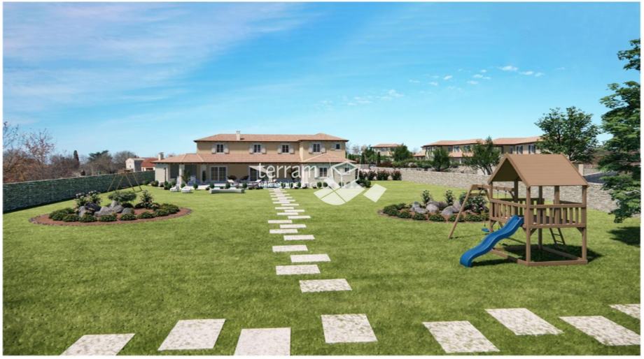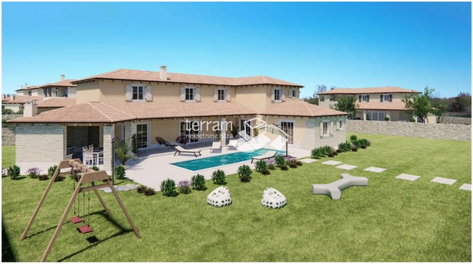 Istra, Žminj prodaje se Vila u izgradnji. Prostire se na okućnici od 2800m2 te se sastoji od prizemlja i prvog kata. U prizemlju se nalazi: ulazni hodnik, dvije spavaće sobe svaka s vlastitom kupaonicom, dva spremište, zasebna kupaonica, kuhinja s blagavaonom i velikim dnevnim boravkom s izlazom na natkrivenu terasu i bazen. Unutarnje stepenice vode na prvi kat gdje se nalaze tri spavaće sobe svaka sa svojom kupaonicom, prostorija sa sunom i natkrivena terasa. Kuća će biti opremljena vrhunskom stolarijom, keramikom te grijanje i hlađenje. Garaža sa dva parkirna mjesta. Udaljenost od autoputa 4km, a od Rovinja 20km.
