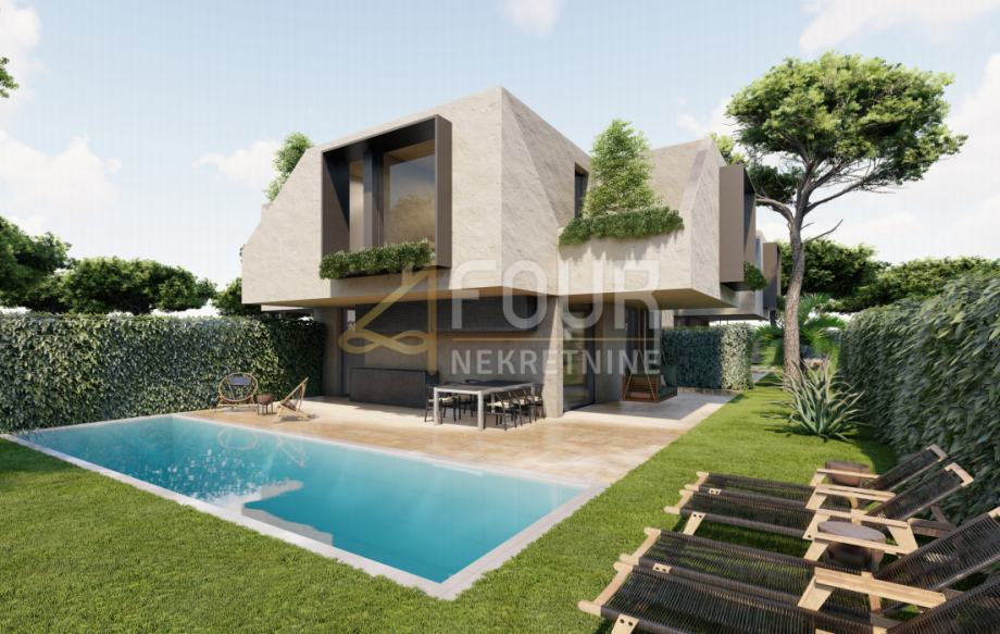 Moderna novogradnja – dvoetažni stan u naravi dvojna kuća s bazenom i okućnicom!
