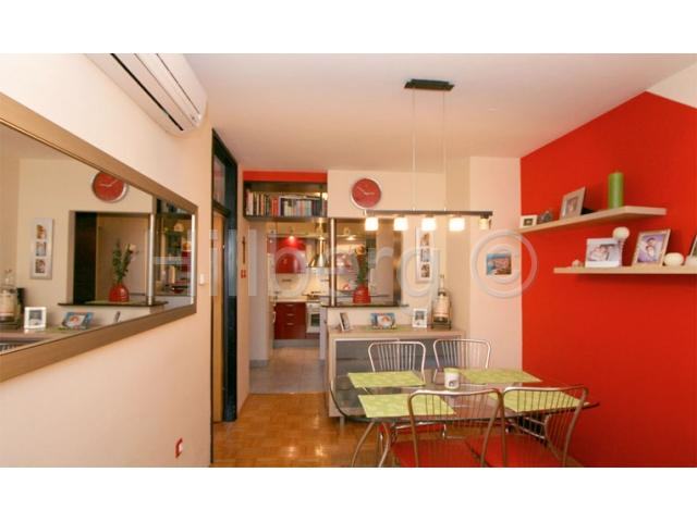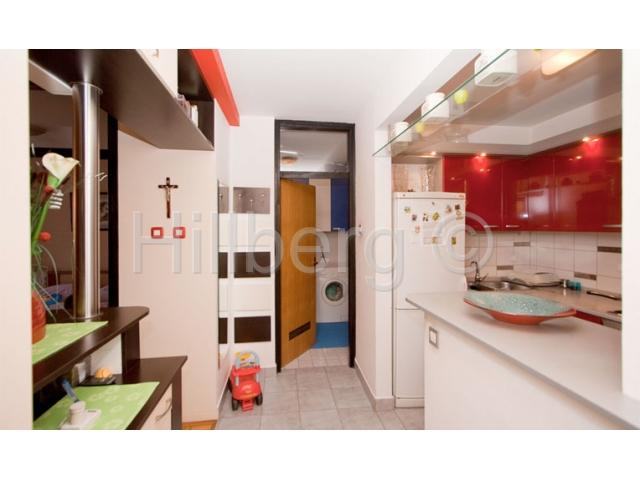Dvosobni stan površine 49,24 m2, smješten na 5. katu u zgradi s liftom. Sastoji se od: dnevnog boravka s blagovaonicom i kuhinjom, spavaće sobe, kupaonice (kada) , balkona (4 m2) i spremišta (u podrumu). Besplatan parking u dvorištu. U cijenu je uključen kompletan namještaj.