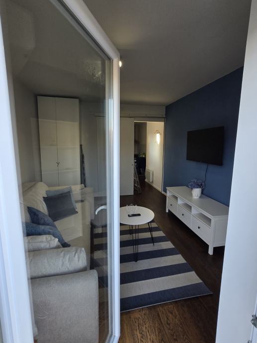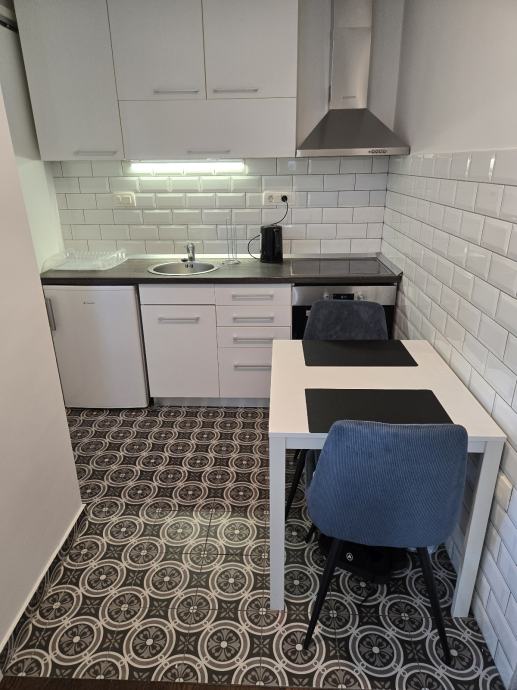 Izdaje se garsonjera na 3. katu stambene zgrade, potpuno namjestena i spremna za useljenje za jednu osobu ili par.Stan se sastoji od hodnika, kuhinje, kupaone te jedne sobe sa balkonom.Grijanje u stanu je na struju putem norveskih radijatora te dodatno je moguce grijati uz klimu.Stan je u potpunosti namjesten ( kupaona opremljena, kuhinja sa svim posudjem i uredjajima)