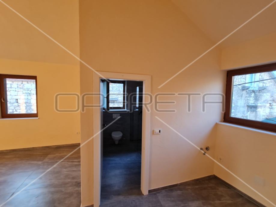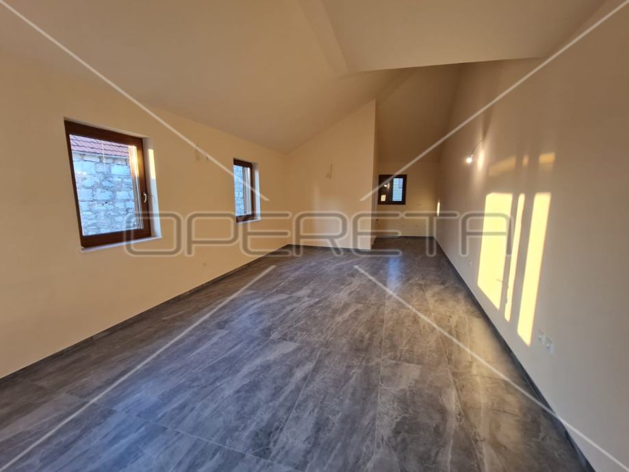 Kat se sastoji od natkrivene terase od 23 m2 preko koje se ulazi u garsonijeru od 40 m2, s dodatnom kupaonicom. Gornji prostor je u potpunosti otvoren i zbog nakošenog krova strop je prilično visok.