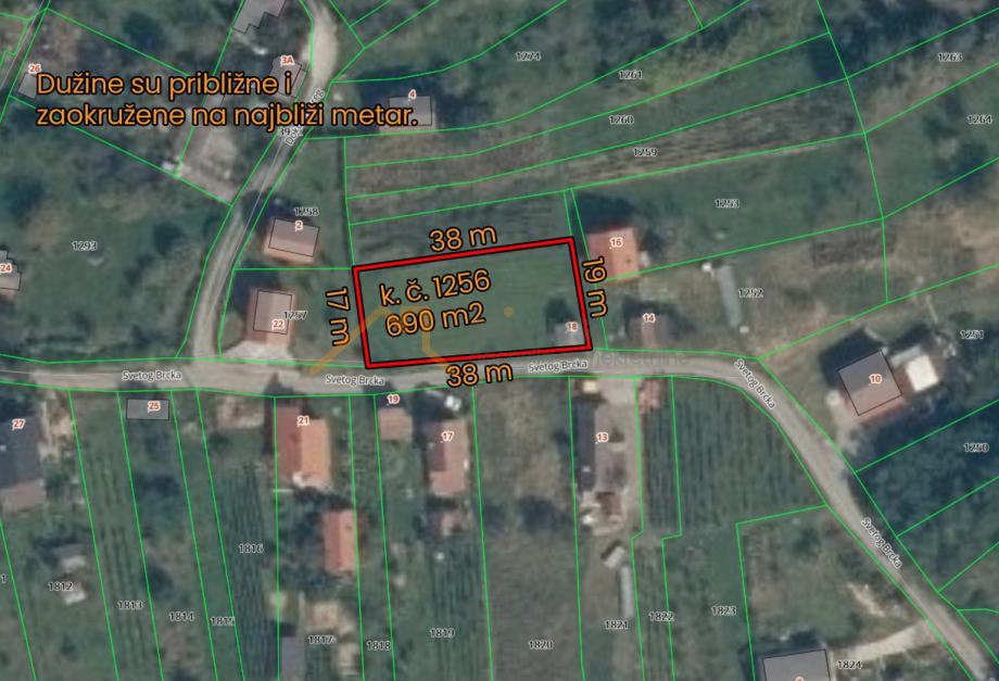 Prodaje se Izgrađeno zemljište u Brckovljanima, zemljište je van građevinske zone Ukupna površina parcele iznosi 690m2