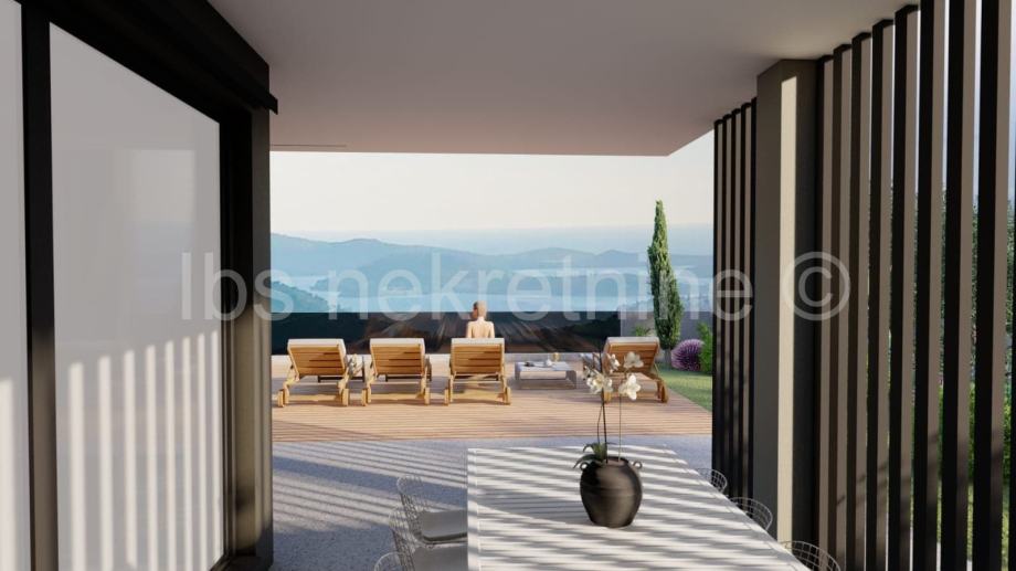 Urbana vila nalazi se na zemljištu od 500 m2 smještenom na mirnom dijelu uzvišenog platoa što omogućuje panoramski pogled na more i otoke.