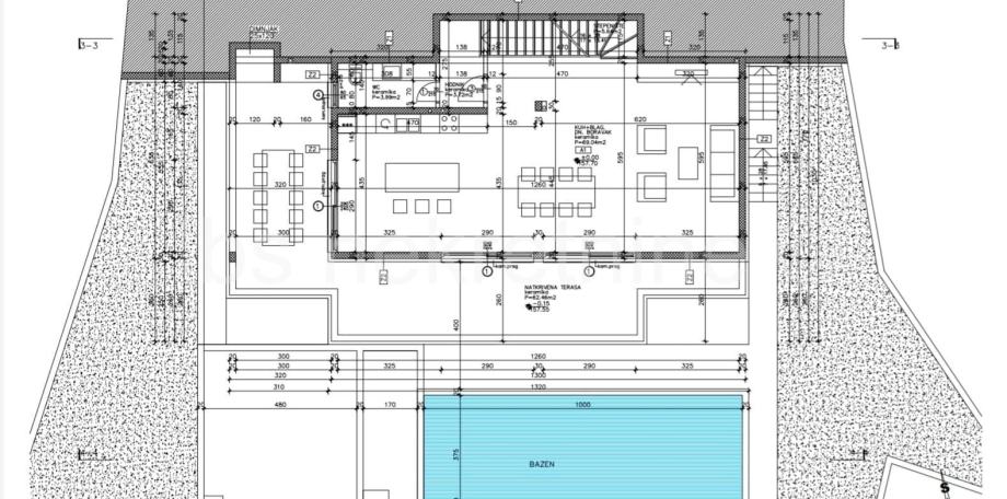 Veliki bazen od 35 m2 smješten na prostranoj terasi sa predivnim pogledom idealno je mjesto za provoditi sunčane ljetne dane. Visokokvalitetna gradnja, moderan izgled vile sa velikim staklenim stijenama, bazen, blizina centra Rogoznice i povijesnih gradova Šibenika, Trogira i Splita sa obiljem sadržaja čine ovu nekretninu odličnom investicijom.